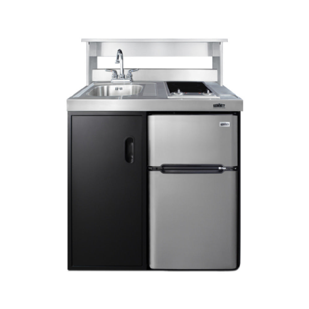 The Summit APSS36 Kitchenette Shelf is a commercial-grade metal storage and workspace accessory designed specifically for installation with Summit's CK36 series kitchenettes. Constructed from durable heavy-duty metal, this 36-inch wide shelf provides an optimal 18-inch depth, allowing it to accommodate small appliances such as microwaves, coffee makers, or other essential kitchen tools. Its precise design enhances operational efficiency in foodservice environments by expanding storage capacity and facilitating streamlined workflow in compact kitchen stations.