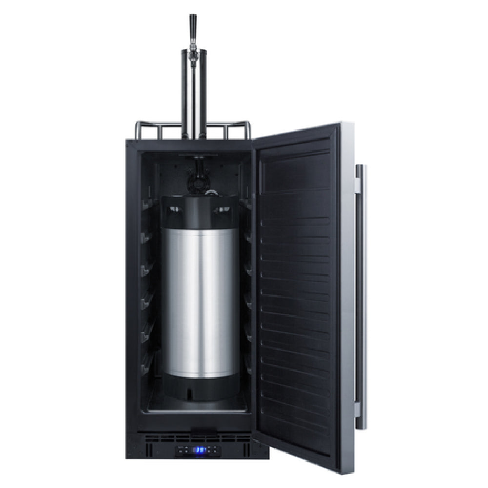 The Summit SBC15CF Cold Brew Coffee Dispenser is a commercial-grade nitro cold brew coffee dispenser designed for precise temperature control and versatile installation options. With a 15-inch width and a 2.9 cubic foot capacity, it holds one 1/6 keg and features a self-contained, rear-mounted hydrocarbon refrigeration system. The digital thermostat regulates temperatures from 34°F to 50°F, ensuring optimal freshness and flavor preservation for specialty coffee applications in busy hospitality environments. Its robust construction and integrated components meet high standards for commercial kitchen equipment, making it suitable for cafes, coffee bars, and specialty beverage outlets seeking consistent, high-quality cold brew service.