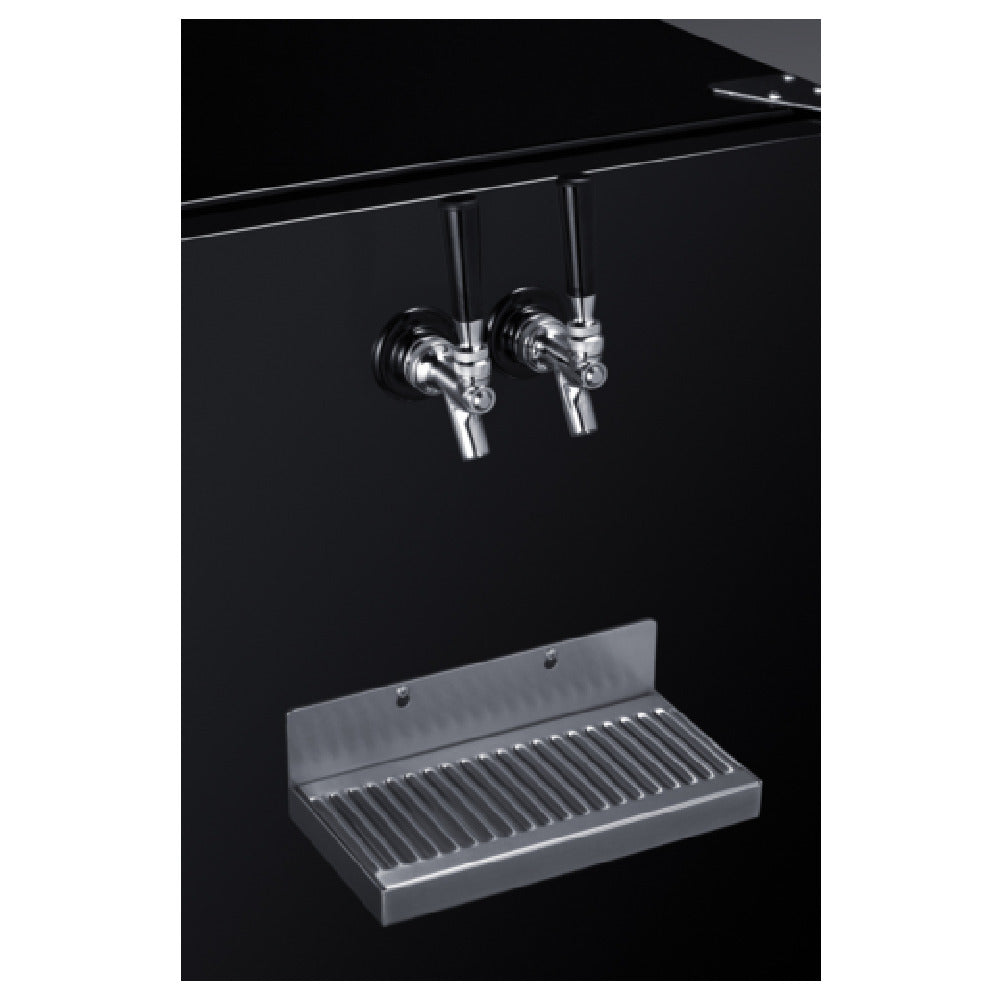A commercial draft beer cooler is a refrigeration unit designed for storing and dispensing beverages such as beer or cold brew coffee in high-volume settings. The unit features self-contained cooling with precise temperature control, typically installed in bars, restaurants, or cafes. The Summit SBC58BFRTPCF is an all-metal, countertop-integrated draft cooler capable of supporting two sixtel kegs, with durable stainless steel construction and dual front taps that streamline beverage service in busy commercial environments, ideal for mid-volume coffee and beverage stations requiring reliable cold dispense capabilities.