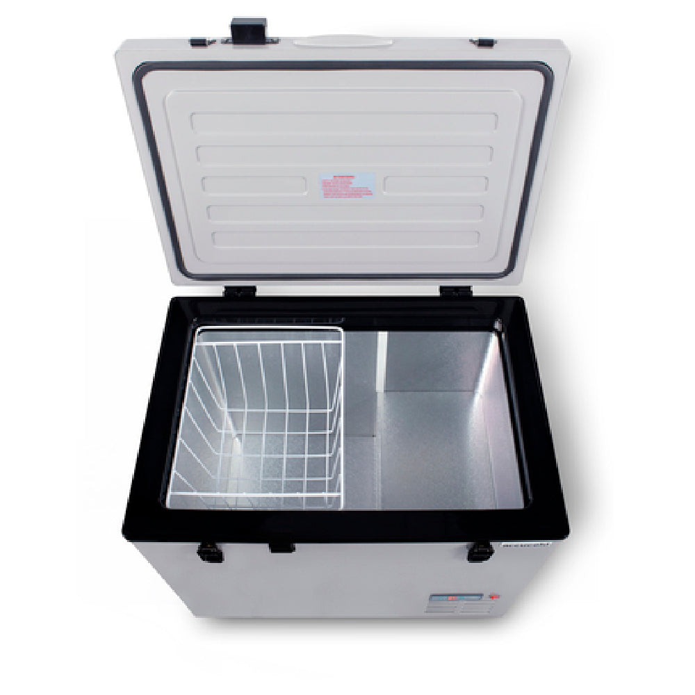 This portable refrigerator freezer is tailored for commercial foodservice buyers needing reliable, mobile cooling with durable construction. Its aluminum interior and gray exterior ensure longevity; digital temperature controls provide precision, and the unit’s compact size fits tight kitchen or mobile environments. It includes side handles, removable basket, fabric cover, casters, and a side-mounted compressor for effortless mobility, maintenance, and workflow integration. Designed to handle moderate workloads in catering, outdoor service, or mobile operations, it offers dependable cooling in a compact footprint.