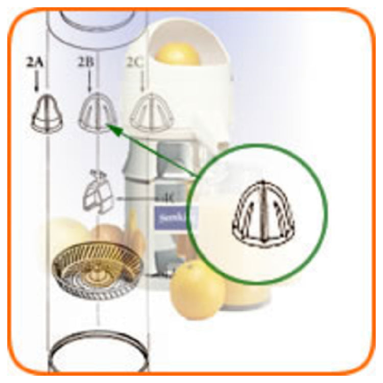 The Sunkist 02B Extracting Bulb With Metal Insert in orange is a meticulously engineered replacement part designed for commercial juicer systems, specifically compatible with models 7 and 8. As a vital component in citrus juice extraction, this extractng bulb features a durable metal insert that enhances longevity and ensures precise operation during high-volume produce processing. Constructed with high-grade materials, it maintains consistent performance under demanding kitchen environments, facilitating efficient juice extraction and minimizing downtime. Its technical specifications include a model number 02B, weight of 0.14 lbs, and compatibility with Sunkist juicers, making it an essential accessory for commercial foodservice operations seeking reliable, restaurant-ready parts for continuous service demand.