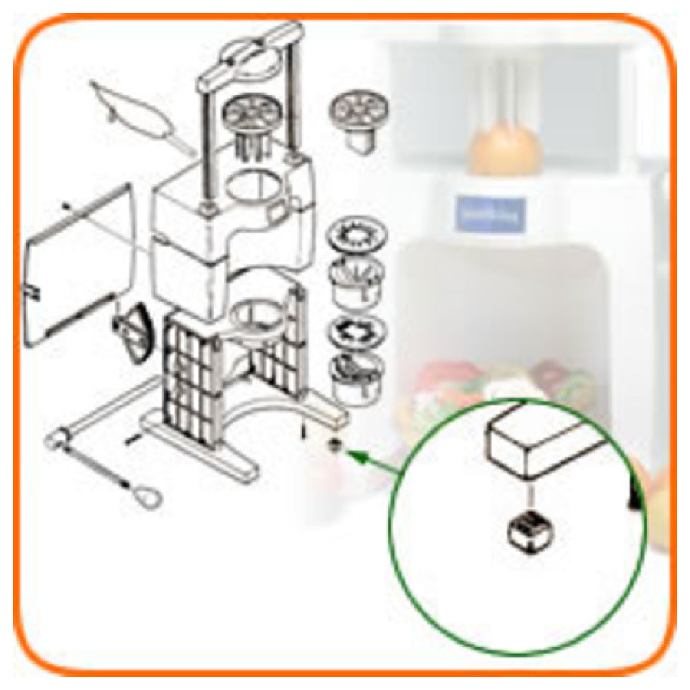 A commercial foot pad is a critical component designed to support and stabilize food processing equipment in professional kitchens. Specifically, the Sunkist S-01K Foot Pad is a replacement part intended for use with fruit and vegetable wedgers, providing a secure footing that enhances safety and efficiency. Installed in industrial foodservice environments such as batch processing lines or high-volume kitchens, this foot pad ensures consistent machine stability and easy replacement to minimize downtime. Its construction adheres to strict hygiene and durability standards, making it ideal for commercial food processing setups requiring reliable, sanitary support parts.