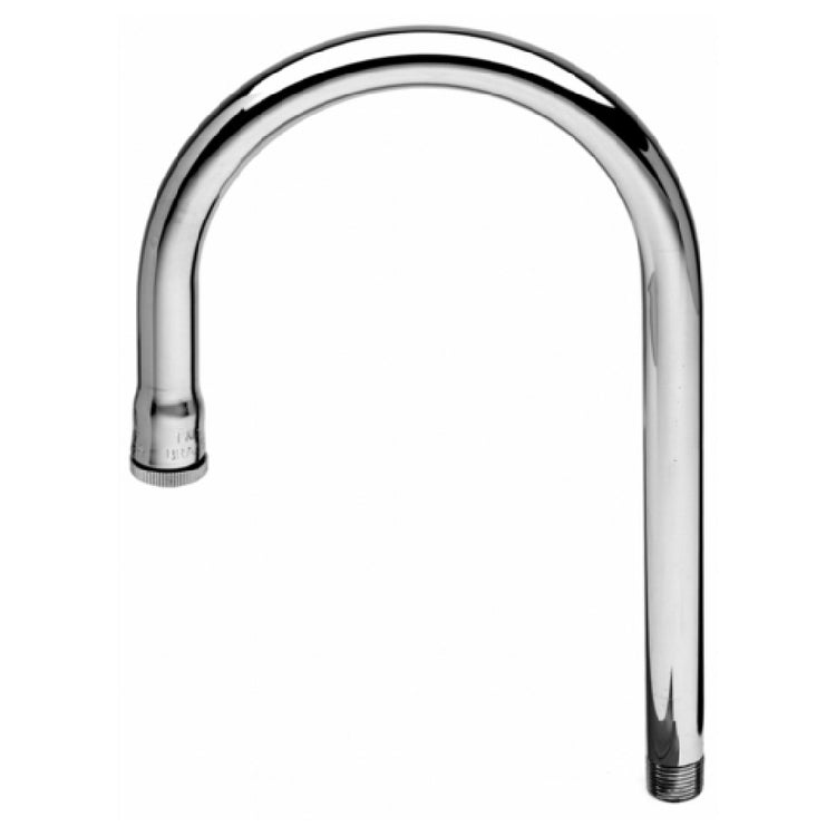 The T&S Brass 122X Nozzle is designed for commercial kitchen settings demanding robust performance and easy integration. Its gooseneck profile provides optimal reach for water access, with a rigid build for stability during intensive use. Constructed from high-quality chrome-plated brass, it offers corrosion resistance and longevity. The stream regulator outlet ensures controlled water flow, reducing splashing and conserving water. Ideal for foodservice environments, its compatibility with 3/8" NPT connections simplifies installation and replacement in existing fixtures.