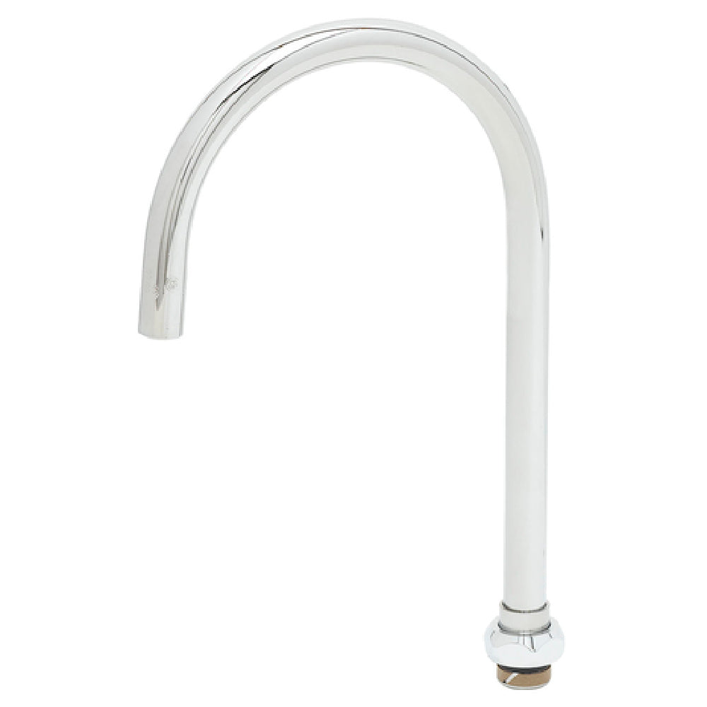 A commercial faucet nozzle swivel is a resilient plumbing accessory designed for high-demand kitchen and cleaning applications. It features a gooseneck design with a rotating spout for flexible water direction, made from corrosion-resistant materials such as stainless steel. Installed in commercial sinks, prep stations, or industrial dishwashers, the swivel nozzle supports efficient water delivery, simplifying routine operations. The T&S Brass 133XP-F10 model offers a 10-5/16-inch height, a 5-11/16-inch spray spread, and a 6-5/16-inch clearance, making it suitable for busy foodservice environments requiring durable and versatile water outlets established for extensive daily use.