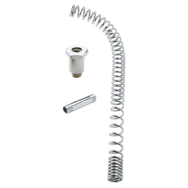A commercial pre-rinse faucet spare parts kit is a collection of OEM replacement components designed to facilitate the maintenance and repair of high-capacity kitchen plumbing fixtures. These kits include springs, bodies, and fittings made from durable materials, allowing for straightforward repairs that restore flow and performance. Installed primarily in busy restaurant, cafeteria, or institutional environments, they ensure continued operational efficiency in essential dishwashing or sanitation stations. The T&S Brass B-0113-K kit exemplifies this, providing trusted OEM parts suitable for standard overhead spring assemblies, making it ideal for high-volume foodservice environments requiring prompt repairs and reliable performance.