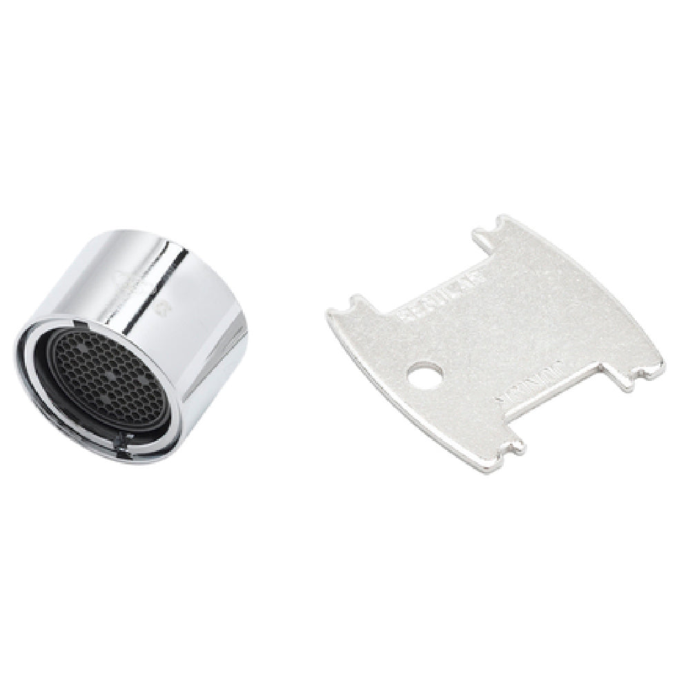 This model features a stainless steel construction optimized for durability in high-use foodservice environments. It attaches via a 55/64" -27 female thread, compatible with standard gooseneck faucets and nozzles. The aerator weighs 0.1 lbs and comes with a tool for secure installation and removal, which is required for maintenance. The component is designed for commercial plumbing systems, offering reliable water flow regulation while resisting vandal manipulation. Its corrosion-resistant materials facilitate easy cleaning without special procedures, supporting sanitation protocols common in restaurant and institutional kitchens. Dimensions conform to standard thread size specifications, enabling straightforward integration. The product’s mounting interface supports standard fixture configurations, and its construction ensures longevity under typical operating temperatures.