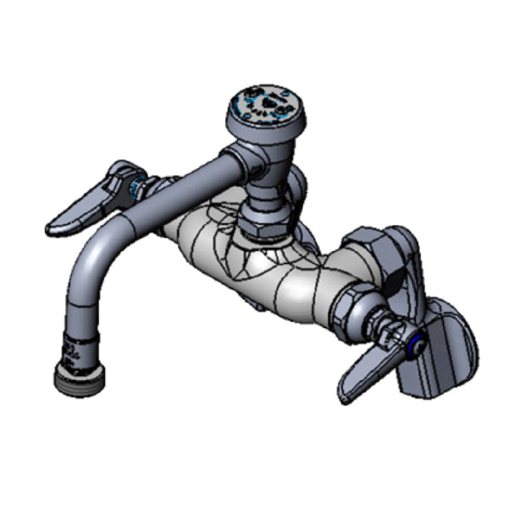 Commercial wall mount mixing faucets ensure durable, precise water control perfect for busy kitchen stations. The T&S Brass B-0259 offers robust construction, adjustable inlet arms, and safety features, making it suitable for moderate throughput in institutional and restaurant settings, enhancing workflow efficiency and sanitary operation.