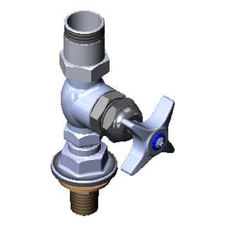 The Big-Flo Pantry Faucet offers reliable performance with a single-hole deck mount suitable for commercial kitchens. Its swivel base allows for efficient placement in tight spaces, and the robust construction ensures longevity in high-traffic environments. The compression valve system guarantees smooth operation and ease of maintenance, while the absence of a nozzle facilitates flexible attachment options. Designed for moderate workloads, this fixture improves workflow continuity in food prep and sanitation stations.