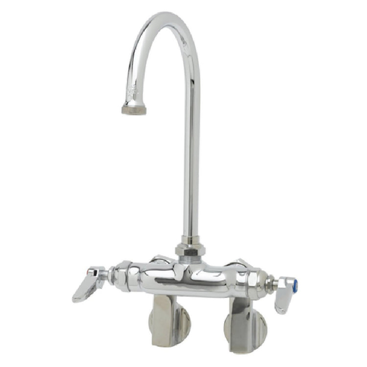 T&S Brass B-0341 Faucet 8-Inch Adjustable Gooseneck Splash Mount with Lever Handles