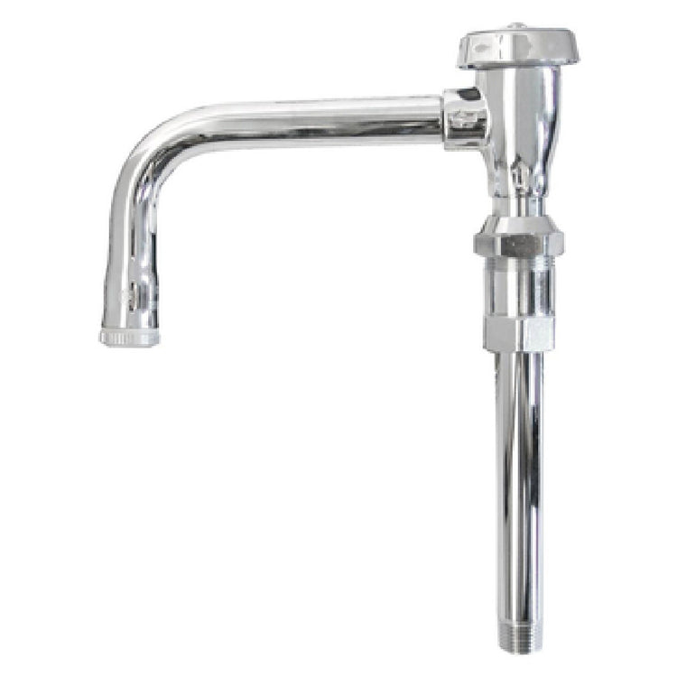 This swivel vacuum breaker gooseneck is designed for high-volume commercial kitchens, offering ease of integration with existing plumbing systems and simplified maintenance. Its robust construction from polished chrome ensures long-term durability, resistance to corrosion, and a polished finish that resists grime buildup. The swivel vacuum breaker facilitates flexible positioning, reducing installation constraints, while the compact dimensions permit installation in tight spaces. Its precise dimensions support seamless fitment, ideal for restaurant prep stations, cafeteria kitchens, and hospitality service counters engaging in frequent sanitation.