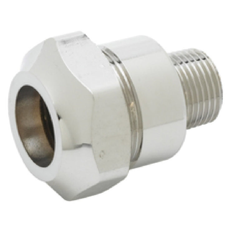 The T&S Brass B-0414 Gooseneck Coupling features a compact construction with an overall weight of 0.42 lbs, manufactured from high-quality brass with a standard 1/2-inch NPT threaded connection. It is designed for use within a temperature operating range suitable for water delivery systems, with corrosion-resistant properties supporting long-term durability. The part dimensions conform to industry standards, enabling reliable integration with existing plumbing infrastructure. The coupling is built for ease of installation, requiring no electrical connection or additional accessories, and is suitable for use in high-demand commercial kitchens. Its corrosion-resistant finish and precise threading contribute to maintenance efficiency, supporting continuous operation in foodservice environments.