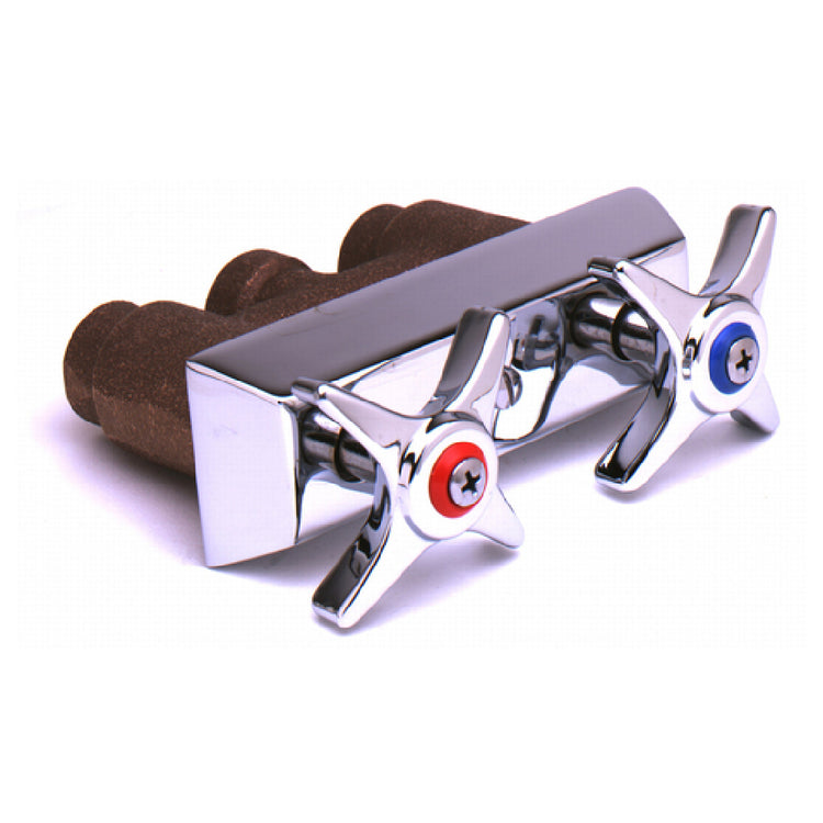 The B-0512 concealed mixing faucet accentuates functionality through its four-arm handle design, facilitating precise temperature adjustments, and its robust construction with corrosion-resistant materials ensures long-term operational durability. Designed for easy maintenance, its 3/8" NPT inlets and outlets enable straightforward plumbing connections. Ideal for commercial kitchens with limited space, the faucet improves workflow by providing reliable mixing at strategic restaurant or cafeteria stations, accommodating medium-volume dishwashing or prep tasks.
