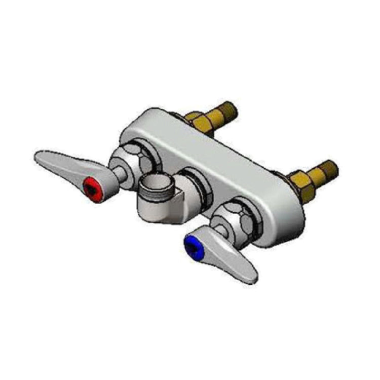 The T&S Brass B-1115-LN Faucet Workboard Less Nozzle Splash Mounted is a commercial-grade wall or splash-mount faucet designed for high-efficiency foodservice environments. Crafted with a durable bronze body, this faucet features splash mounting for flexible installation and a 4" center spread for compatibility with standard setups. It is equipped with removable seats and quarter-turn Eterna cartridges, ensuring smooth operation and simplified maintenance. Without a spout or nozzle, it provides a customizable solution for precise workflows, making it suitable for restaurant kitchens, prep stations, and wash areas requiring reliable plumbing fixtures tailored for moderate throughput applications.