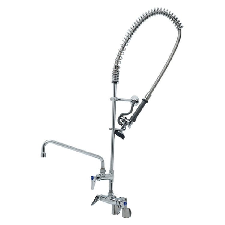 T&S Brass, B-2261-12-CR-B, EasyInstall Pre-Rinse Unit, wall mount, adjustable inlet arms from 2-1/4" to 8-1/4" centers, 12" swing spout add-on faucet, spring action gooseneck, 1.15 GPM spray valve (B-0107), 18" riser, 44" flexible stainless steel hose, 6" wall bracket, 1/2" IPS female inlets, lever handles, quarter-turn Cerama cartridges, low lead, 2019 DOE PRSV - Class II