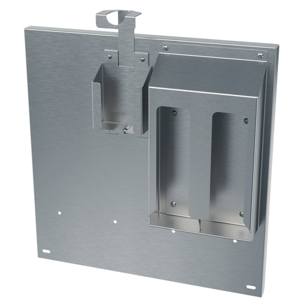 The T&S Brass TPS1000-BS1 backsplash features a 20-inch height with stainless steel construction, integrating a soap dispenser and paper towel holder to streamline handwashing stations. Its corrosion-resistant stainless steel surface ensures long-term durability under frequent cleaning, while the integrated design facilitates quick installation and simplified maintenance in high-traffic foodservice kitchens. Designed to fit wall-mounted applications, it optimizes space and workflow efficiency, supporting busy professional environments with durable, easy-access sanitation fixtures.
