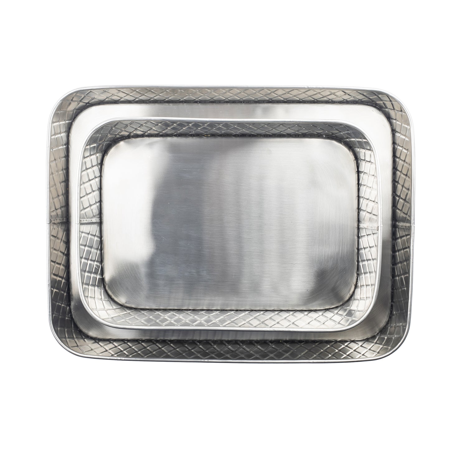 A commercial serving platter is a durable, high-quality flatware piece designed for professional kitchens and foodservice operations. It provides a stable, hygienic presentation platform that withstands frequent handling, cleaning, and stacking. Specifically, the Tablecraft 10038 Lattice Collection™ Platter offers a sleek rectangular stainless steel surface ideal for buffet display, catering, or restaurant use. Its technical features include a rust-resistant structure and precise dimensions suited for efficient workflow in hospitality environments, supporting high-volume service and aesthetic presentation in settings such as hotels, catering events, or institutional cafeterias.