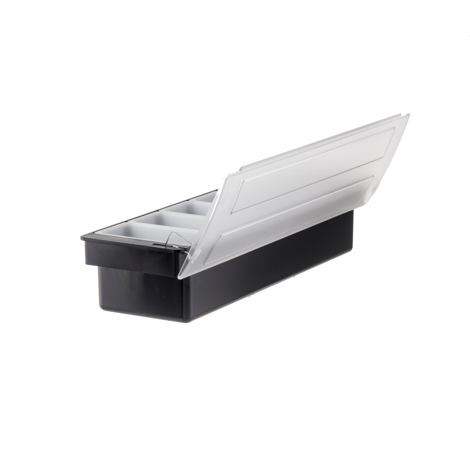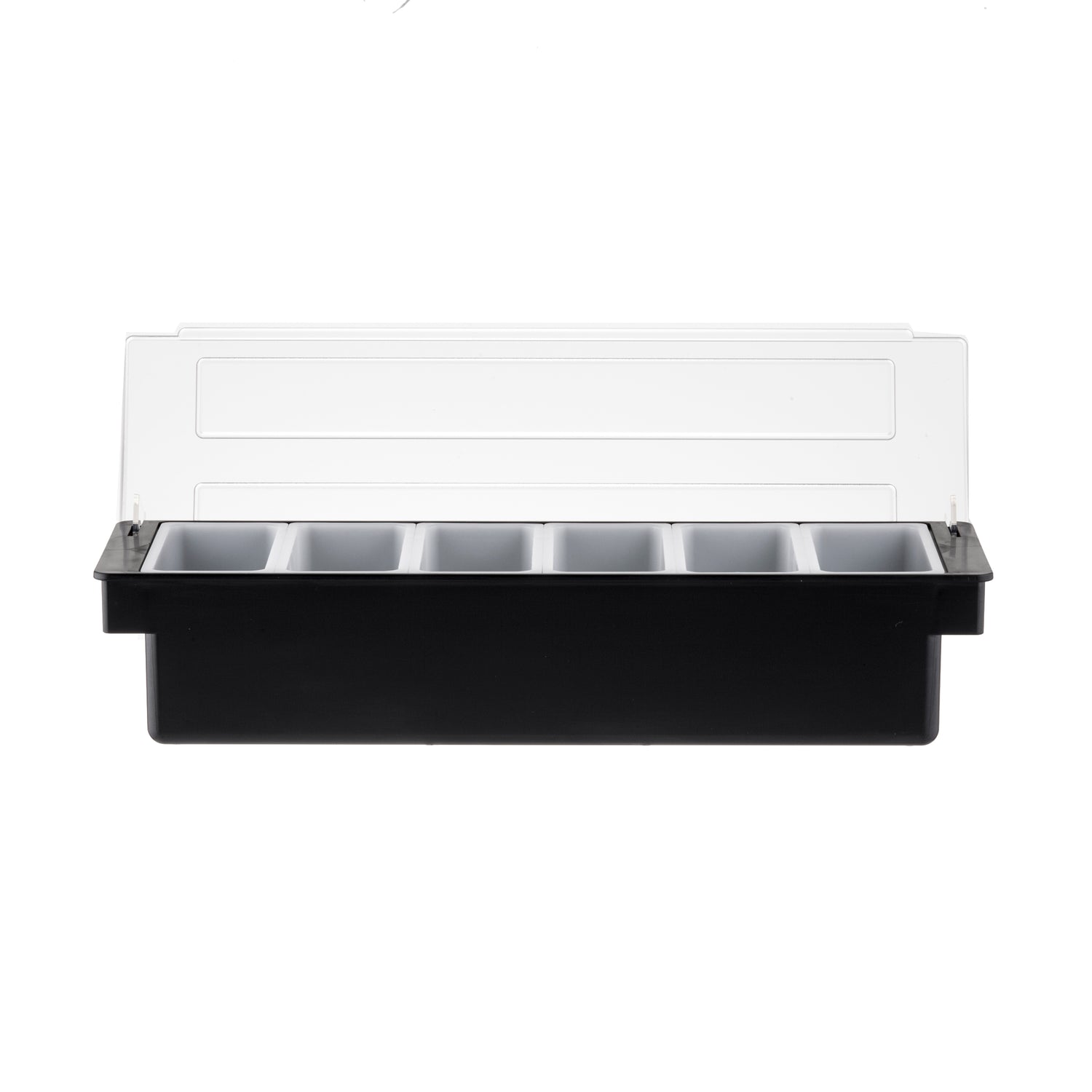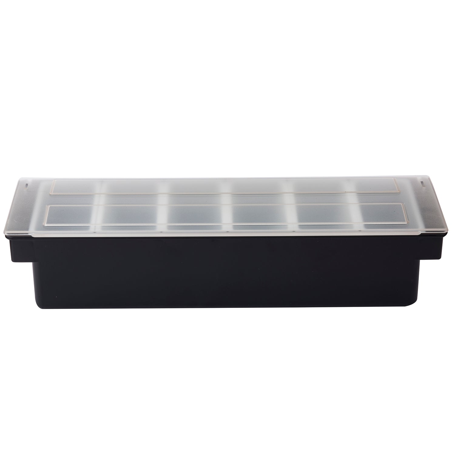 Tablecraft 102 19-1/2 Inch Bar Condiment Holder with 6 White Inserts Plastics Black
