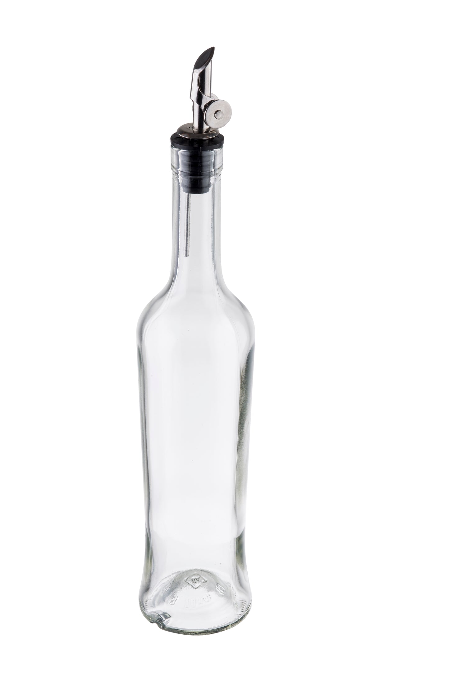 This oil and vinegar cruet combines a high-quality glass body with a stainless steel pourer for durable, sanitary use. Its 17 oz. capacity supports moderate condiment dispensing, and the clear glass allows for easy content identification. Designed for professional environments, it offers straightforward refilling, cleaning, and maintenance, fitting seamlessly into condiment stations, salad bars, and food prep lines for consistent condiment presentation and portioning.