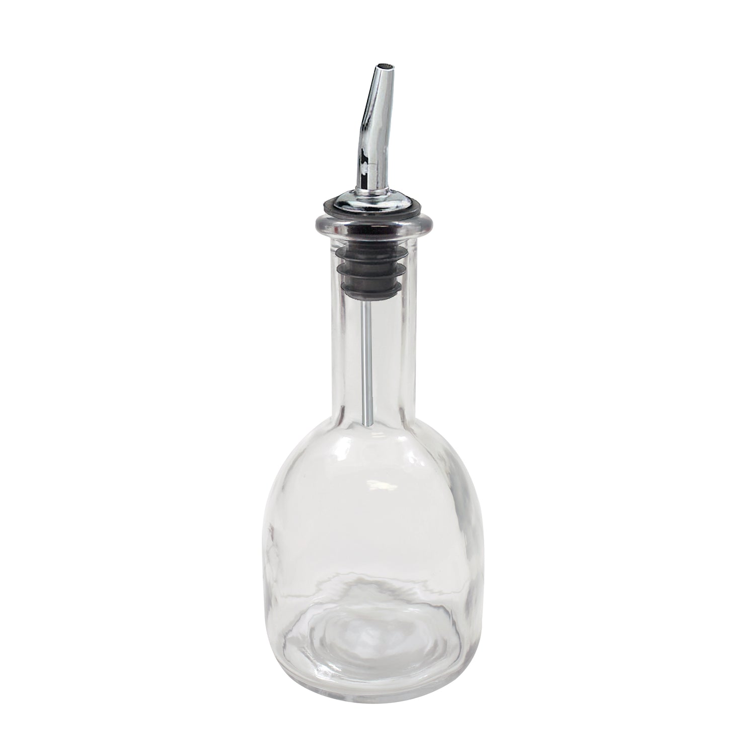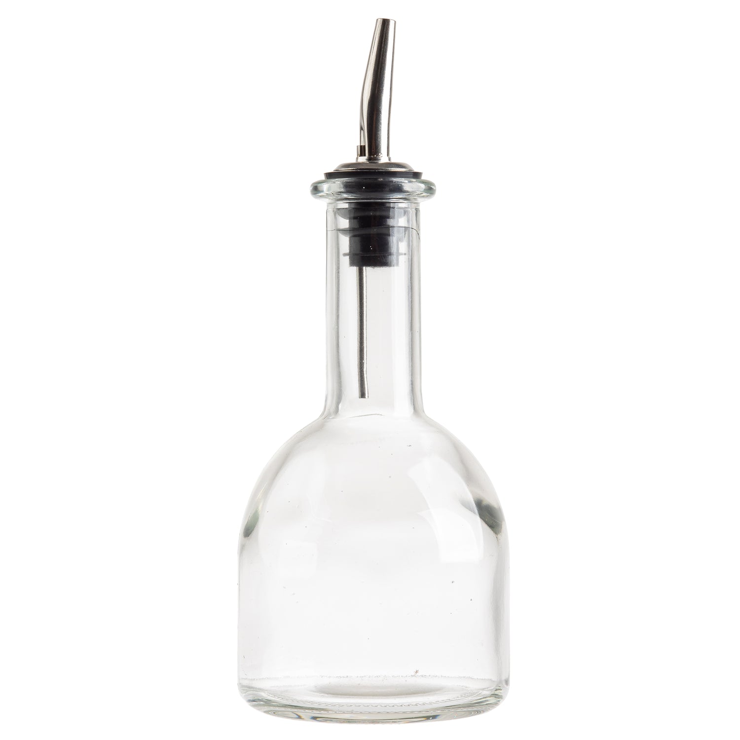 The Tablecraft 10404 Oil & Vinegar Bottle 10 Oz. With Stainless Steel Pourer (599P) is a professional-grade condiment vessel designed for commercial foodservice environments. Crafted from clear glass, this 10-ounce bottle permits precise portion control and visibility of contents, suitable for restaurant, catering, and hospitality applications. Its stainless steel pourer (599P) ensures drip-free, controlled dispensing, making it ideal for high-volume table service, buffet stations, and food prep areas. Engineered for durability and ease of maintenance, the bottle's construction supports frequent cleaning and robust use, while its compact form factor facilitates optimal storage in busy kitchens and self-serve settings.