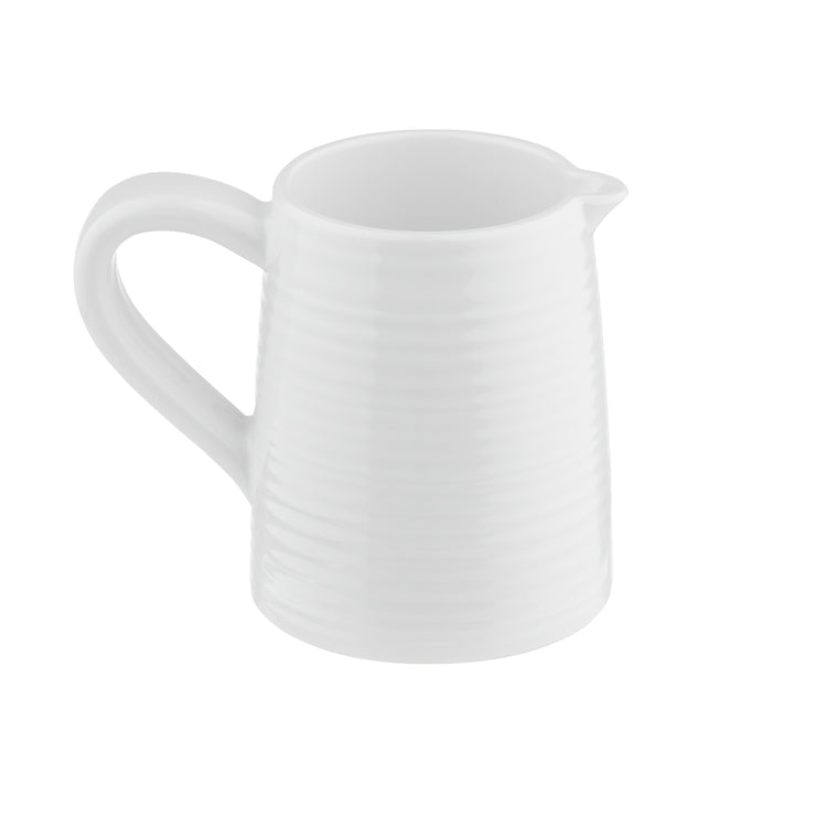 A commercial creamer is a durable, high-capacity container designed to dispense or hold cream, syrup, or similar liquids in foodservice settings. The Tablecraft 10414 Pulito Collection™ Creamer is a plastic, melamine-based unit ideal for cafes, restaurants, and catering operations. It features precise portion capacity of 5 oz., a textured exterior for secure handling, and dishwasher-safe construction. Used primarily for beverage service, this creamer supports efficient, sanitary, and consistent portioning in busy environments, especially suitable for high-volume coffee stations and buffet setups.
