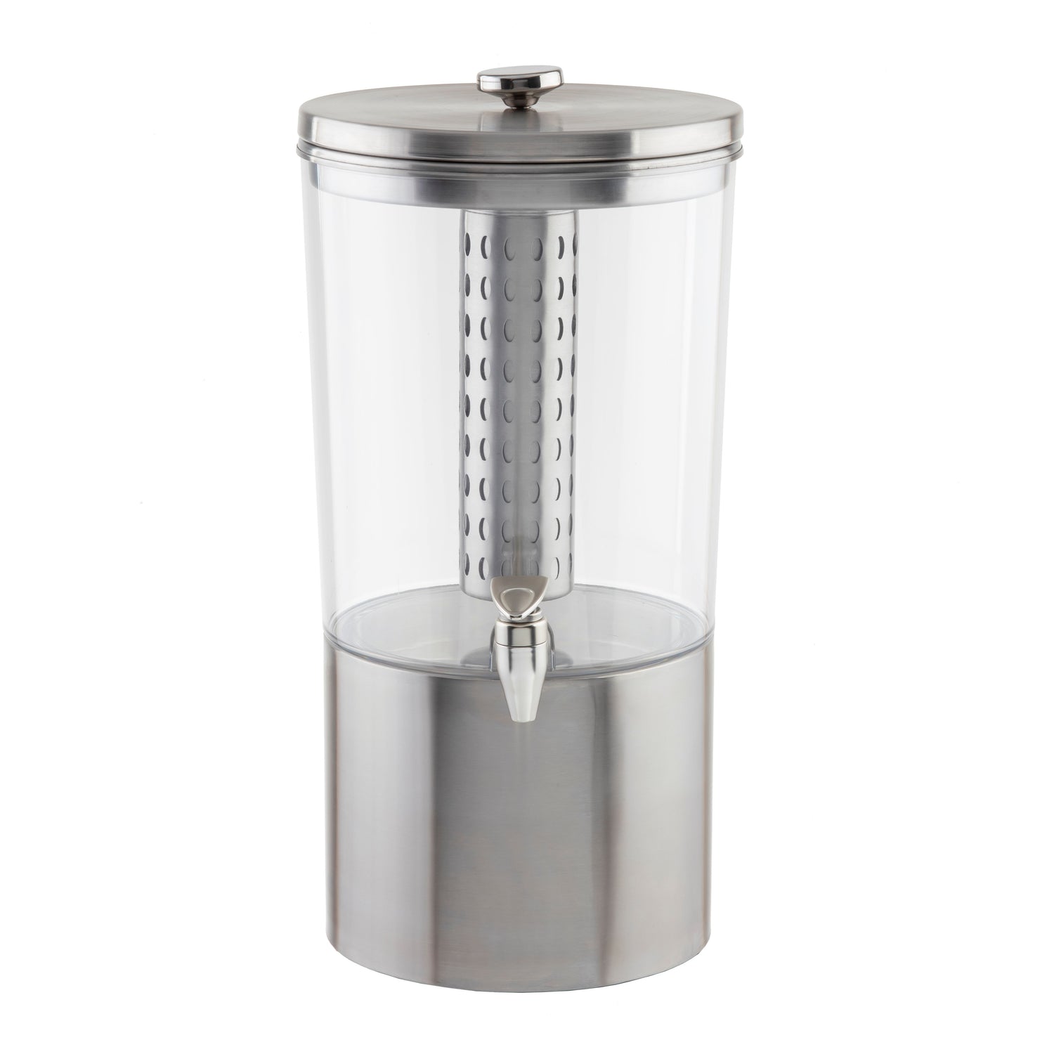 A commercial beverage dispenser is a durable, high-capacity unit designed for self-service or staff-assisted beverage distribution in foodservice settings. These dispensers typically feature stainless steel construction and impact-resistant reservoirs, providing long-term operational performance. The Tablecraft 10450 is a top-tier example, optimized for medium-volume hospitality environments such as buffets, catering venues, and conference centers. It supports efficient pouring with a nickel-plated ABS faucet, and its 2-1/2-gallon capacity makes it suitable for continuous service between refills, ideal for busy foodservice operations requiring reliable dispense functionality in a sleek, professional form factor.