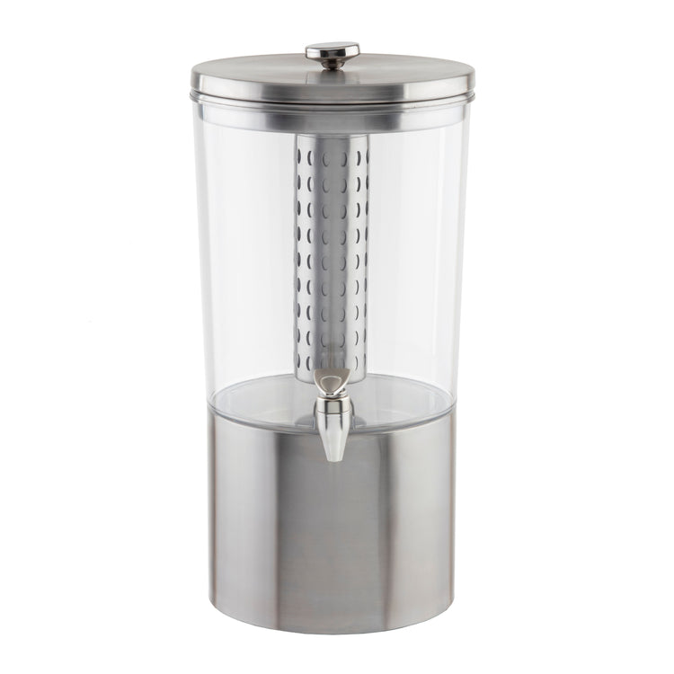 The Tablecraft 10450 Upscale Beverage Dispenser is a professional-grade, non-insulated beverage service unit designed for high-volume foodservice environments. This 2-1/2-gallon stainless steel beverage dispenser features a durable construction with a sleek stainless steel base and a Tritan® reservoir, ensuring longevity and resistance to corrosion. Equipped with a nickel-plated ABS faucet, it provides precise portion control and ease of dispensing, making it ideal for use in commercial catering, buffets, and bar applications. Its technical specifications include a height of 19.75 inches, width of 12.5 inches, depth of 9.75 inches, and an overall weight of 10.8 lbs, ensuring stability and efficient workflow integration in busy settings.