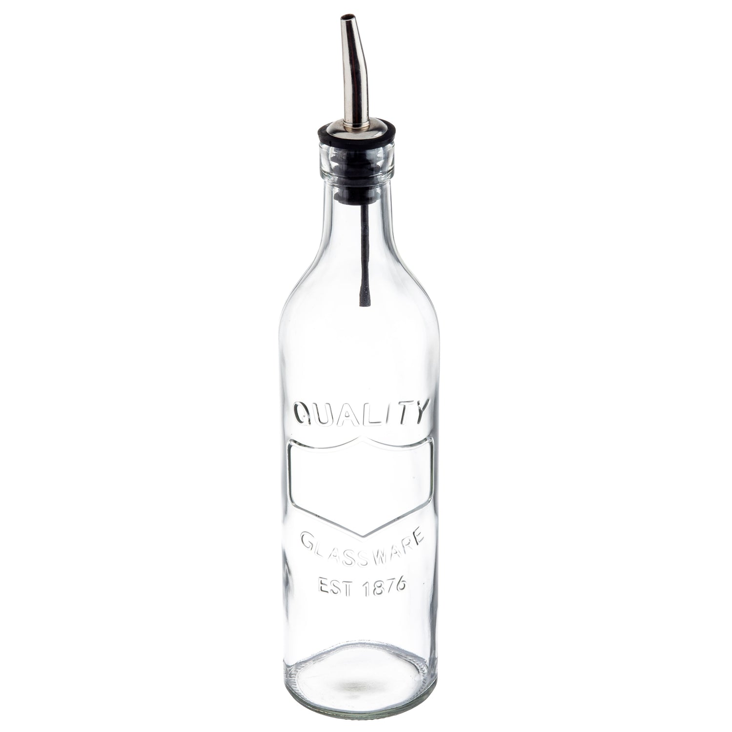 Tablecraft 10713 17 Oz Oil Bottle Stainless Steel Pourer Clear Glass