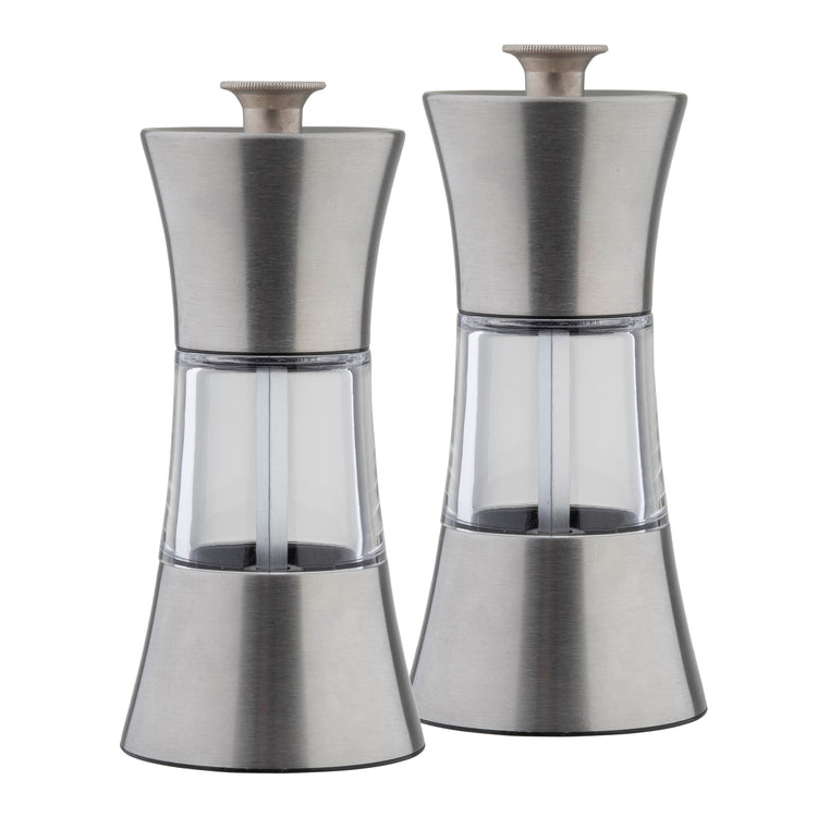 Tablecraft 10924 5 Inch Hand Wash Only Salt and Pepper Mill Set Stainless Steel and Acrylic - 6/Set