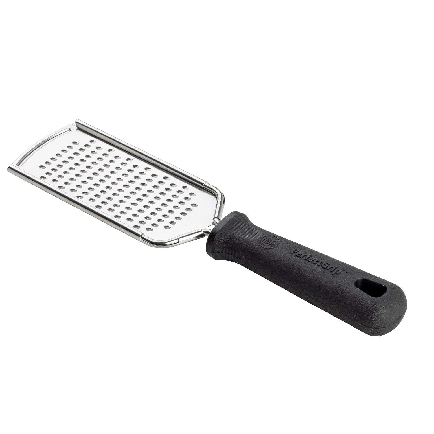 A commercial grater is a professional-grade manual kitchen tool designed for fine food preparation, typically made from durable stainless steel and featuring standardized perforation sizes for specific tasks such as zesting, cheese grating, or spice preparation. The Tablecraft 10978 PerfectGrip™ Grater, with its stainless steel blade and ergonomic handle, is installed in food prep stations across high-volume kitchens. It is best suited for tasks requiring consistent fine grating in commercial settings like restaurants, catering, and institutional cafeterias, supporting efficient workflow in high-demand culinary environments.