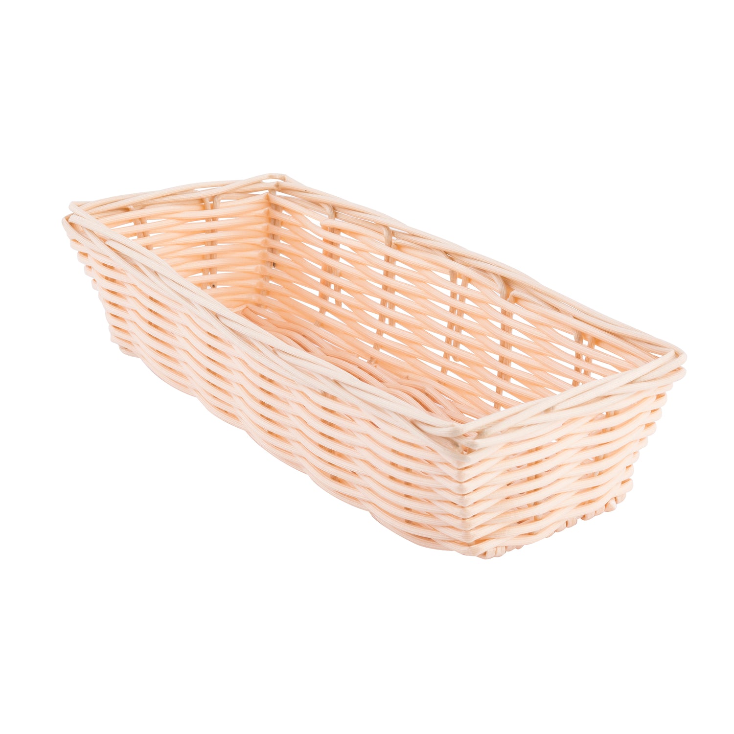The Tablecraft 1116W Basket is a commercial-grade rectangular tabletop storage solution designed for foodservice operations that require durable, functional, and aesthetically neutral organizers. Crafted from high-quality polypropylene, this hand-woven basket measures 9 inches in length, 3-1/2 inches in width, and 2 inches in height, making it ideal for organizing food prep items, condiments, or display products in cafés, buffets, and catering environments. Its natural finish enhances visual appeal while maintaining easy cleanability and consistent performance under demanding usage conditions.