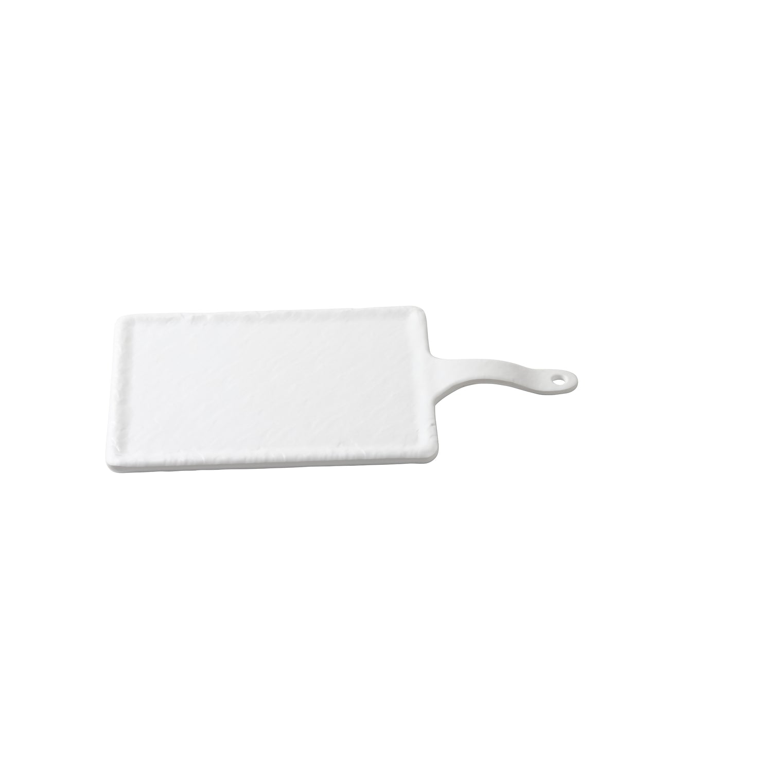 The Tablecraft 11496 Frostone Collection™ Serving Paddle is a high-performance rectangular platter designed for professional foodservice environments. Crafted from durable melamine, it measures 14-1/4 inches in length and 7 inches in width, featuring a 4-1/2-inch handle for secure handling. Its white slate finish enhances presentation without compromising strength or sanitation. Temperature safe up to 212°F (100°C), dishwasher safe for easy cleaning, and suitable for a variety of display and serving applications, making it ideal for commercial kitchens seeking resilient and visually appealing serving utensils.