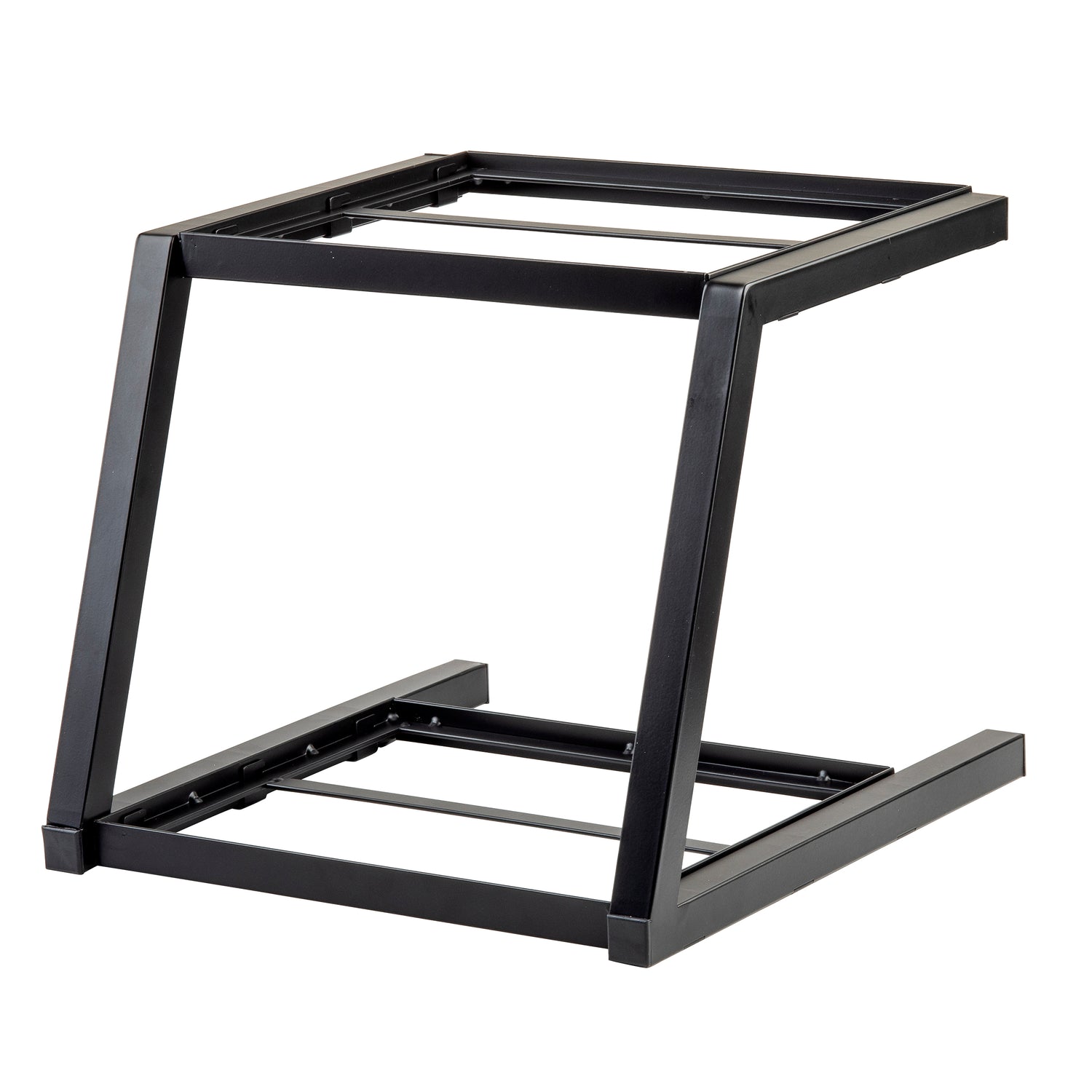 The Tablecraft 11622 Grab & Go Two-Tiered Frame is constructed from high-quality metal with a black powder-coated finish, ensuring durability in busy foodservice environments. It measures 15.25 inches wide and deep, with an adjustable height range of 13 to 16 inches to accommodate different crate sizes. Weighing approximately 9.15 pounds, it provides a stable platform with a square shape designed for straightforward integration into countertop setups. Its compatibility with Gastronorm Half Size Wood Crates makes it an ideal component for merchandising in hospitality, catering, and retail food operations.