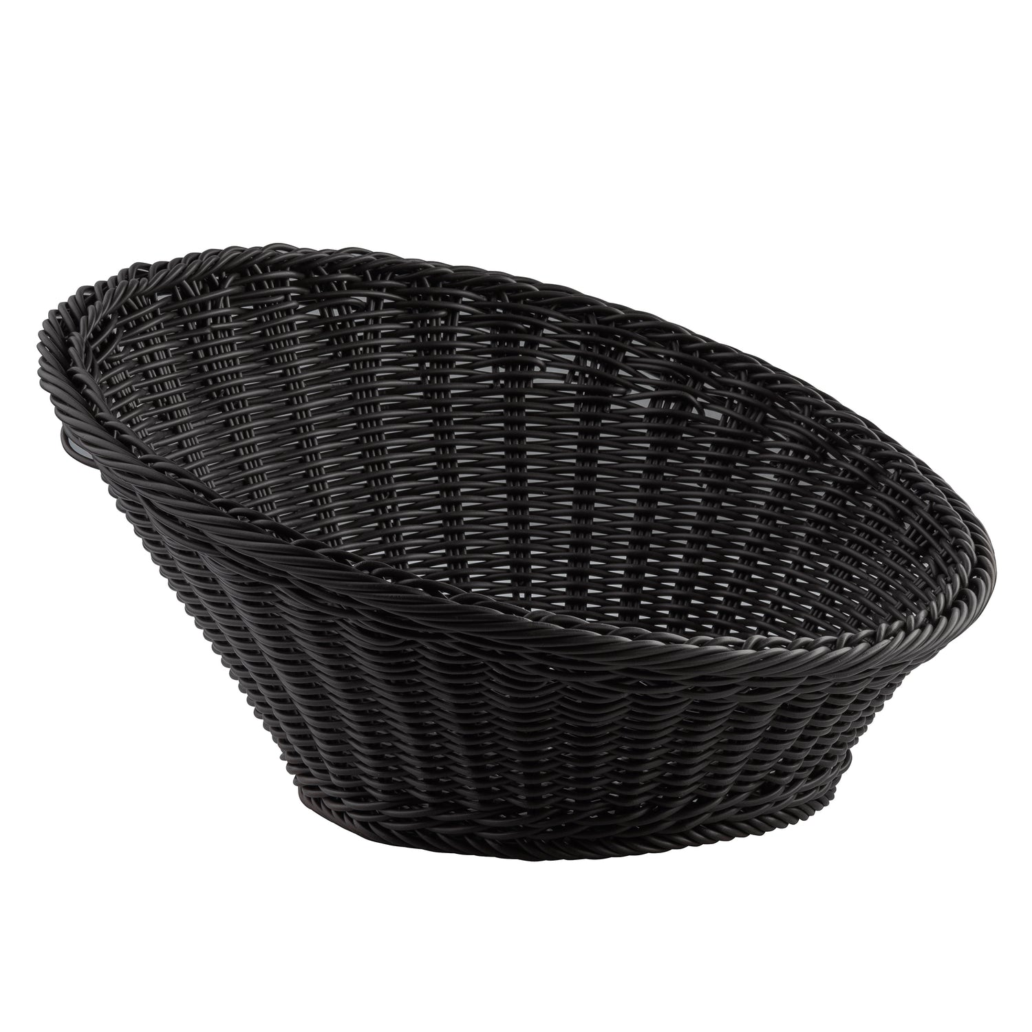 The Tablecraft 12129 Handwoven Basket is manufactured from high-grade polypropylene, providing exceptional durability and resistance to moisture during routine cleaning. This model measures 13-1/2 inches in diameter and 5.625 inches in height, with a round, angled design that enhances display aesthetics. Its construction supports medium-volume foodservice operations, with a focus on durability and ease of maintenance. The basket is designed for versatile placement on countertops or tables in hospitality kitchens, with a straightforward cleaning routine using mild detergents. It is engineered to withstand frequent handling and washing, making it suitable for busy foodservice environments. Its classic black finish complements various decor styles, while the polypropylene material ensures resistance to cracking and fading over time.