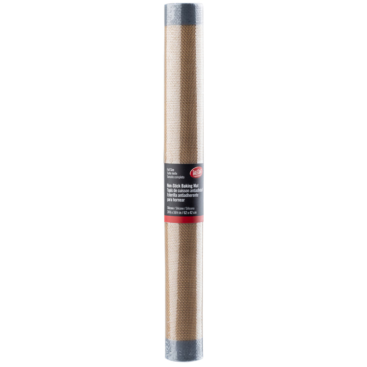 This baking mat offers a resilient silicone surface that withstands repeated thermal cycling and facilitates easy cleaning. Its non-stick properties optimize baking efficiency and minimize residue build-up, while the full-size 24.5" x 16.5" dimensions support large tray applications. Designed for commercial workflows, it integrates seamlessly into baking lines, providing uniform heat transfer and effortless removal of baked goods. The low-profile construction simplifies storage and handling in busy kitchens, making it suitable for tray lining, baking, and cooling processes. This mat’s robust silicone material ensures longevity, even with rigorous daily use.