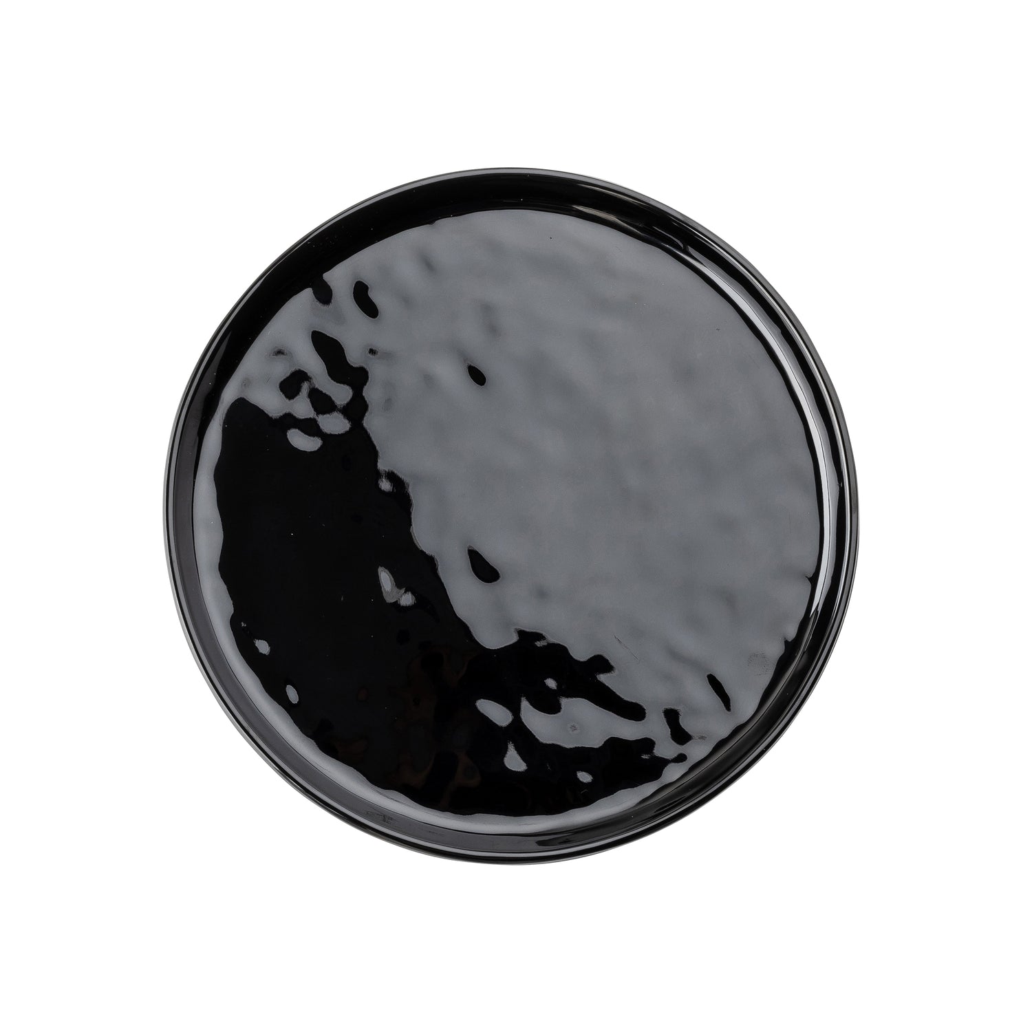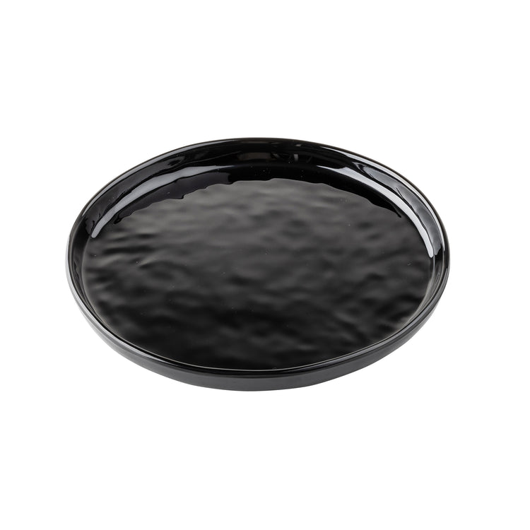 The Tablecraft 12532 Ridge Collection™ Serving Plate features a 7.5-inch diameter in a round melamine composition with a height of 0.75 inches. Constructed from durable, impact-resistant melamine, it offers excellent toughness, even after repeated dishwashing cycles. Its high gloss black finish provides an elegant presentation surface that resists staining and enhances visual appeal. This product is used predominantly in commercial foodservice environments such as buffets, catering, and casual dining, where durability, ease of maintenance, and presentation quality are critical. The plate maintains operational integrity within standard dishwashing temperatures, with a focus on longevity and consistent performance for high-volume applications.