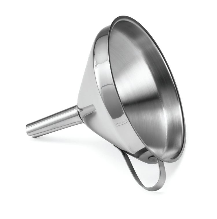 This funnel offers a stainless steel build for durability in busy commercial kitchens, with a 4-inch diameter top that ensures smooth flow and minimizes spills. Its dishwasher-safe property simplifies cleaning protocols, supporting high-volume throughput. Designed for frequent, rigorous use, it integrates seamlessly into food prep workflows, enabling quick transfer between containers or processing stations with minimal downtime.