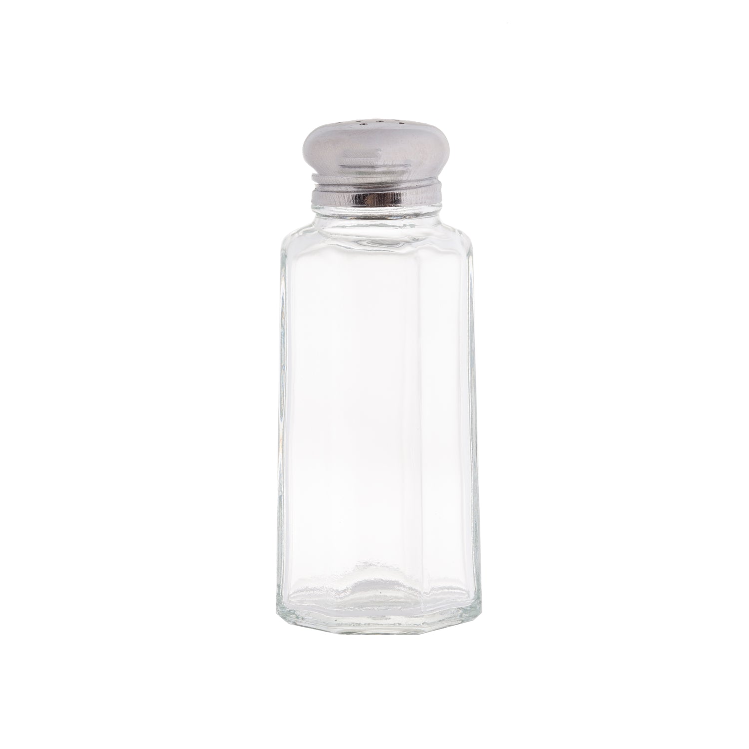 The Tablecraft 155S&P-2 Salt/Pepper Shaker is a commercial-grade dispensing vessel designed for precise portioning in foodservice environments. Crafted from paneled glass for durability and visibility, it features a 2 oz. capacity with a compact footprint of 1-5/8" L x 1-5/8" W x 4" H. Its stainless steel tops provide corrosion resistance and fit models 606R & 606RBK, ensuring compatibility with standard storage racks. Dishwasher safe, this shaker is ideal for high-volume restaurants, cafeterias, and catering operations requiring consistent seasoning control and quick maintenance.