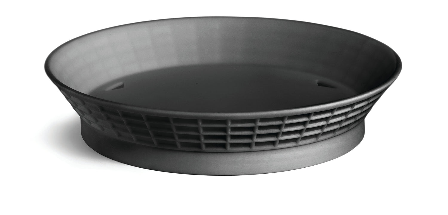 The Tablecraft 157510BK Platter Basket is a commercial-grade foodservice accessory designed for versatile presentation and holding of food items in fast-food, casual dining, and catering environments. This round polypropylene basket measures 10-1/2 inches in diameter and 2-1/8 inches in height, providing ample capacity for serving pre-portioned or display foods. Its heat resistance up to 150°F/65°C, combined with microwave, dishwasher, and heatlamp compatibility, ensures durability in busy kitchen workflows. Engineered for ease of sanitation and maintenance, the basket's black finish offers a professional appearance suitable for high-volume foodservice operations. Its made-in-USA construction supports consistent quality for food presentation and service efficiency.