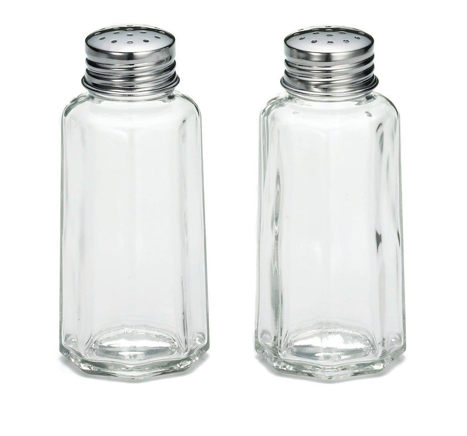 Tablecraft 157S&P 2 Oz Paneled Glass Salt Pepper Shaker with Stainless Steel Top - 24/Case