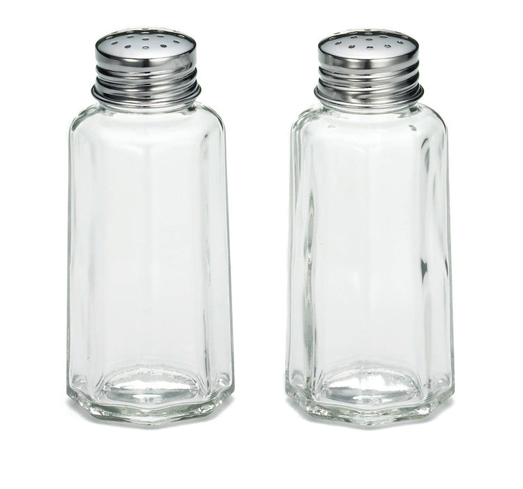The Tablecraft 157S&P salt and pepper shaker provides a precise 2 oz. capacity with paneled glass construction for visibility and durability. Its stainless steel tops enable easy refilling and cleaning, with compatibility for standard rack systems to enhance workflow efficiency in commercial settings. The shaker’s compact design allows for quick seasoning application during high-volume service, while dishwasher safety reduces sanitation concerns. Its robust build ensures longevity in demanding foodservice environments, making it suitable for front-of-house or tabletop use in busy establishments.