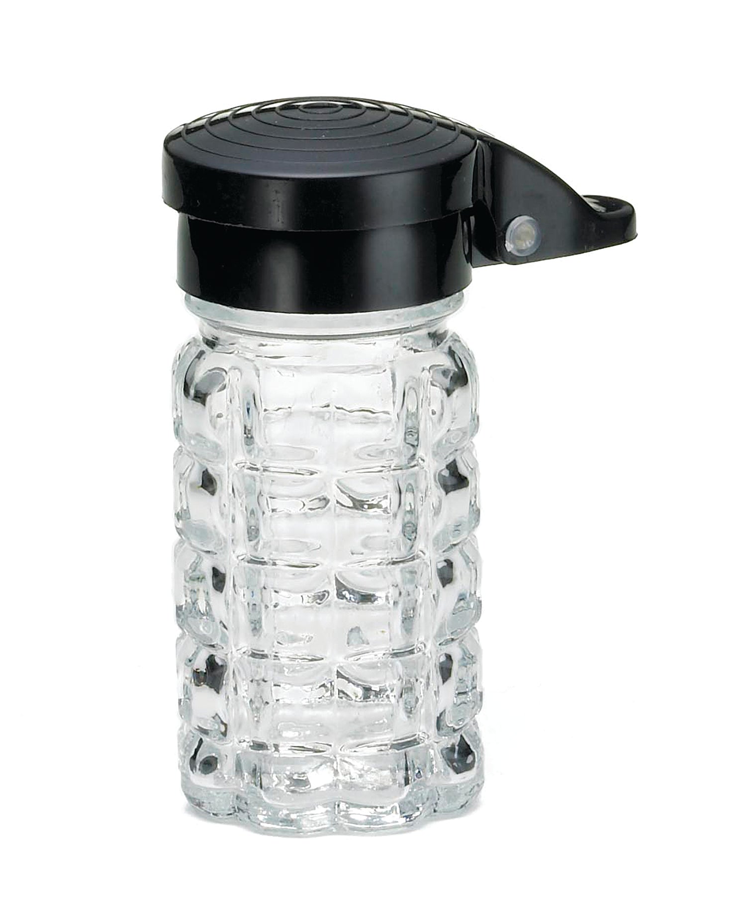 Tablecraft 163MPBK 1-1/2 Oz. Glass Salt/Pepper Shaker with Moisture-proof ABS Black Top