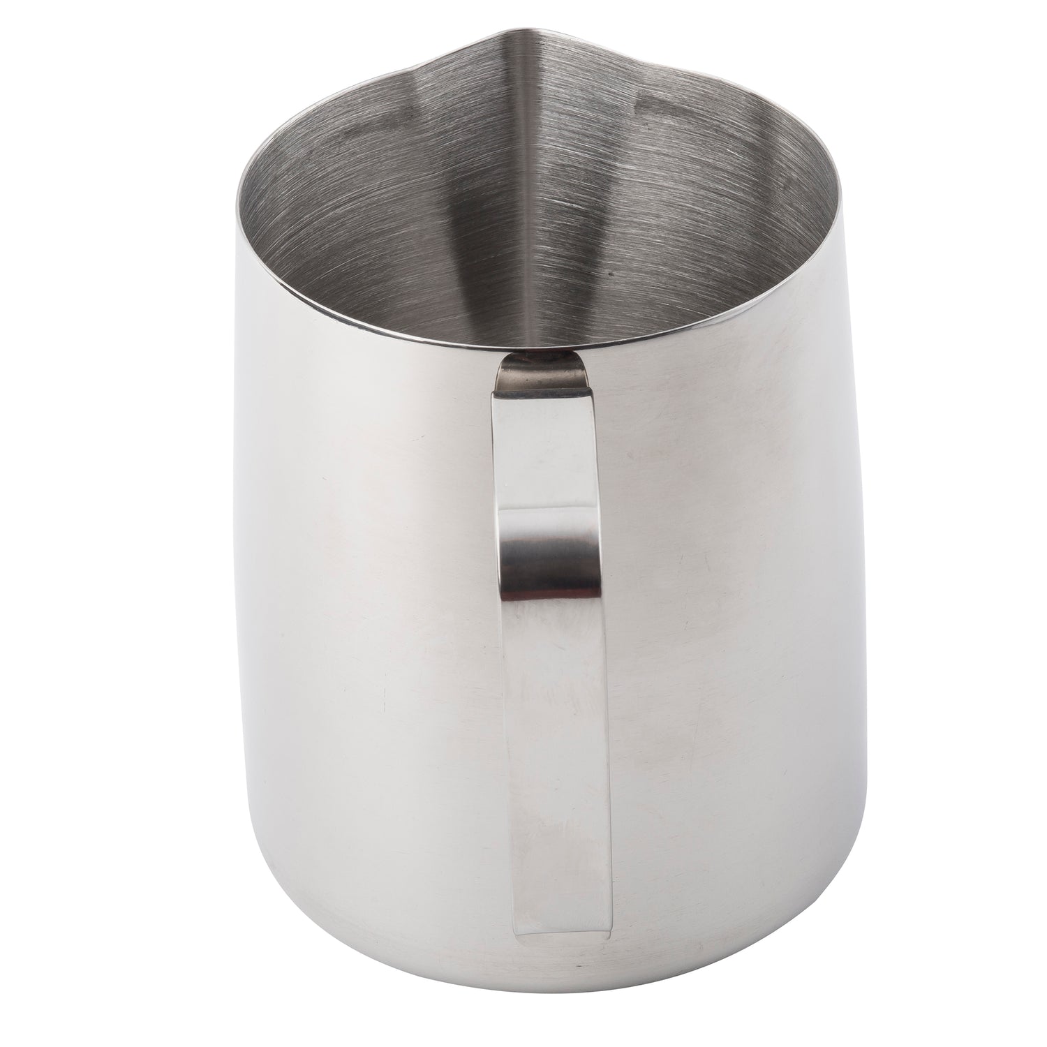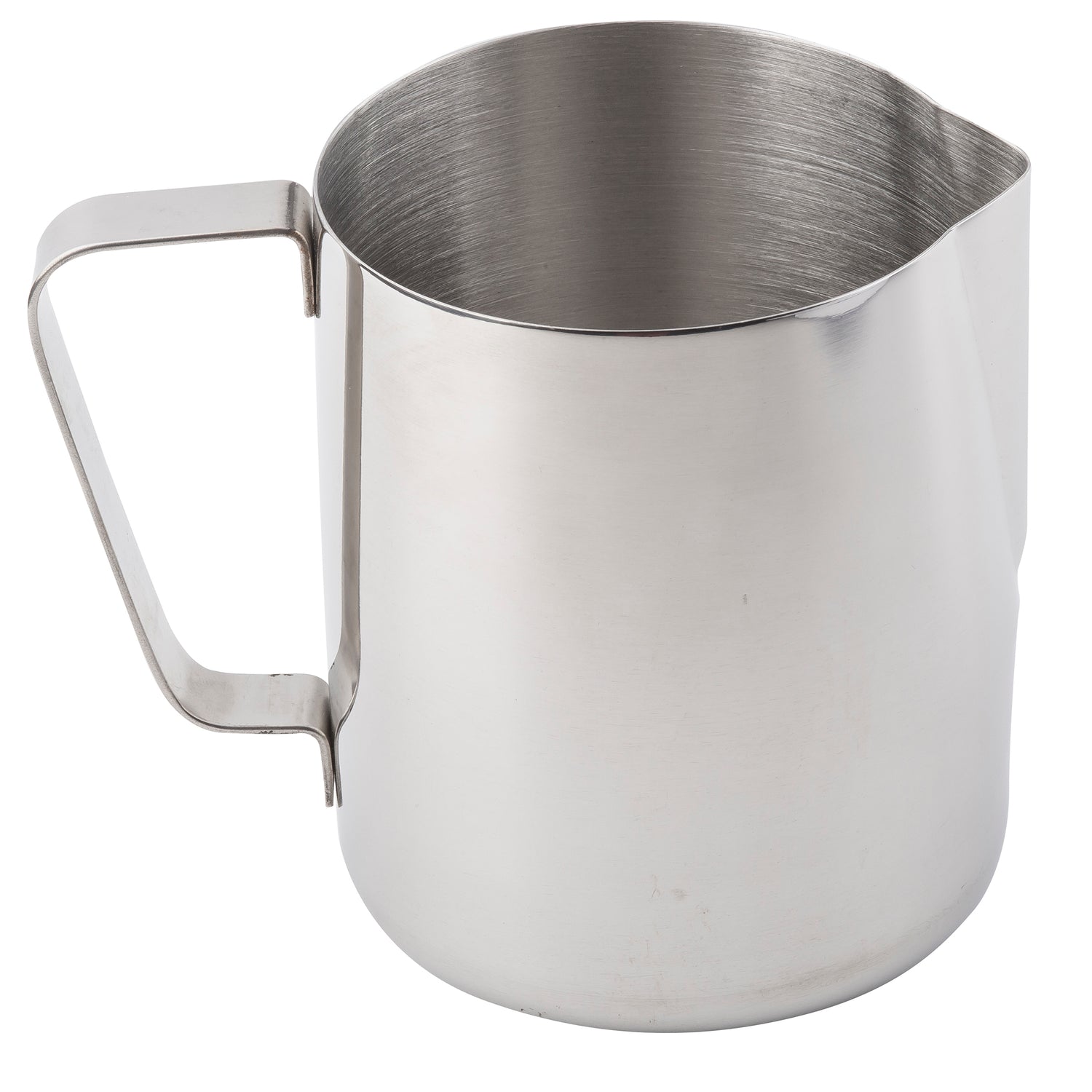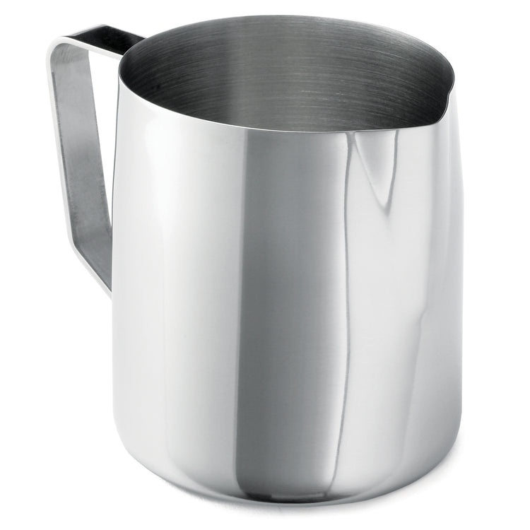 Engineered for commercial tasks, this stainless steel frothing cup provides a resilient and hygienic vessel with a 36 oz. capacity, suitable for high-volume beverage preparation. Its dishwasher-safe design simplifies cleaning routines, while the mirror finish enhances presentation quality. The handle ensures precise control and reduces fatigue during repetitive foaming processes, making it optimal for barista stations and catering operations.