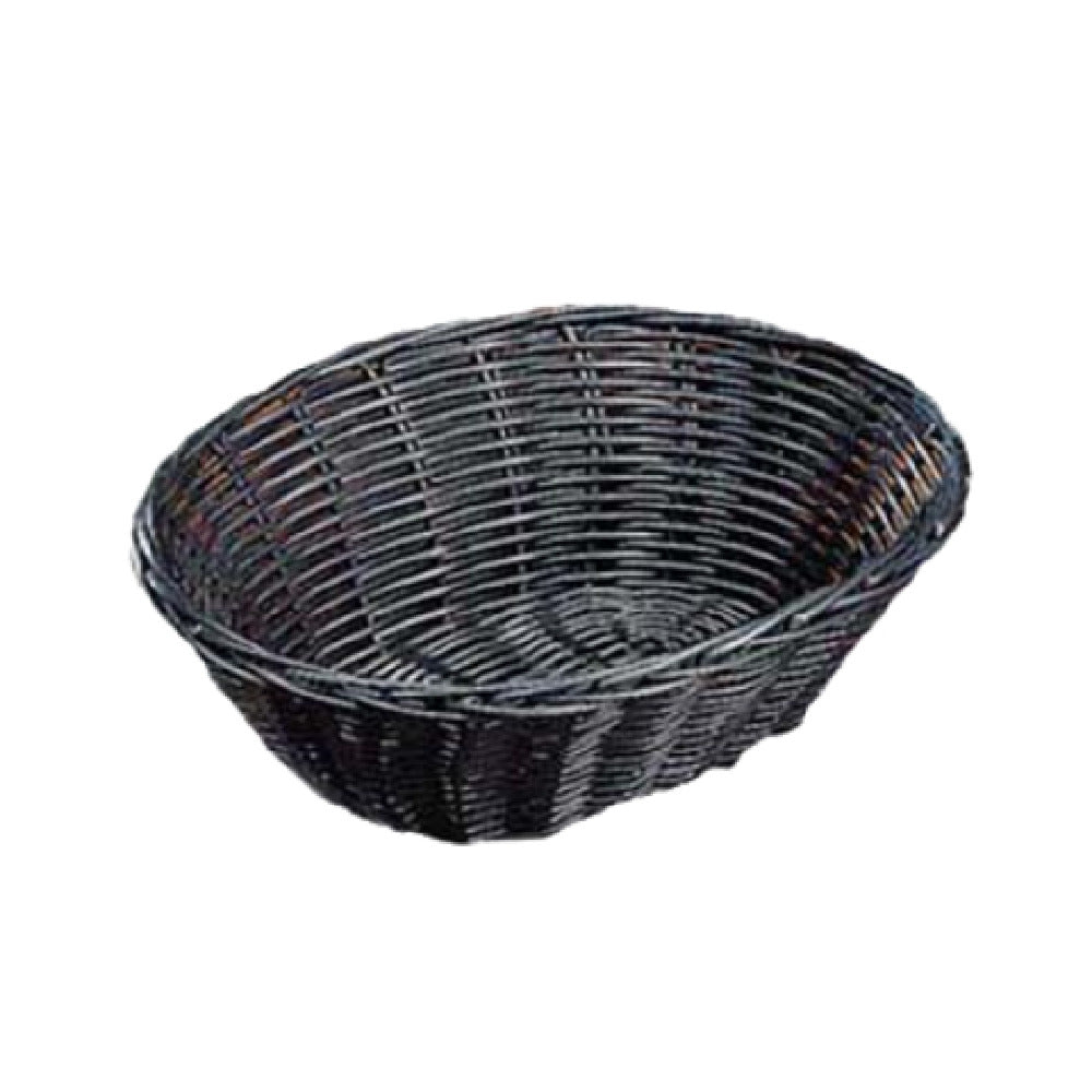 The Tablecraft 2474 Basket, part of the tabletop and plastic product category, is a hand-woven oval basket measuring 9 inches in length, 6 inches in width, and 2-1/4 inches in height. Crafted from durable polypropylene cord, this black basket is designed for commercial foodservice applications requiring dependable presentation and storage solutions. Its sturdy construction accommodates various display needs, making it suitable for bakery counters, deli displays, or self-serve stations. The precise dimensions and reinforced weave ensure longevity and ease of maintenance in high-traffic environments, supporting efficient workflow and product organization.