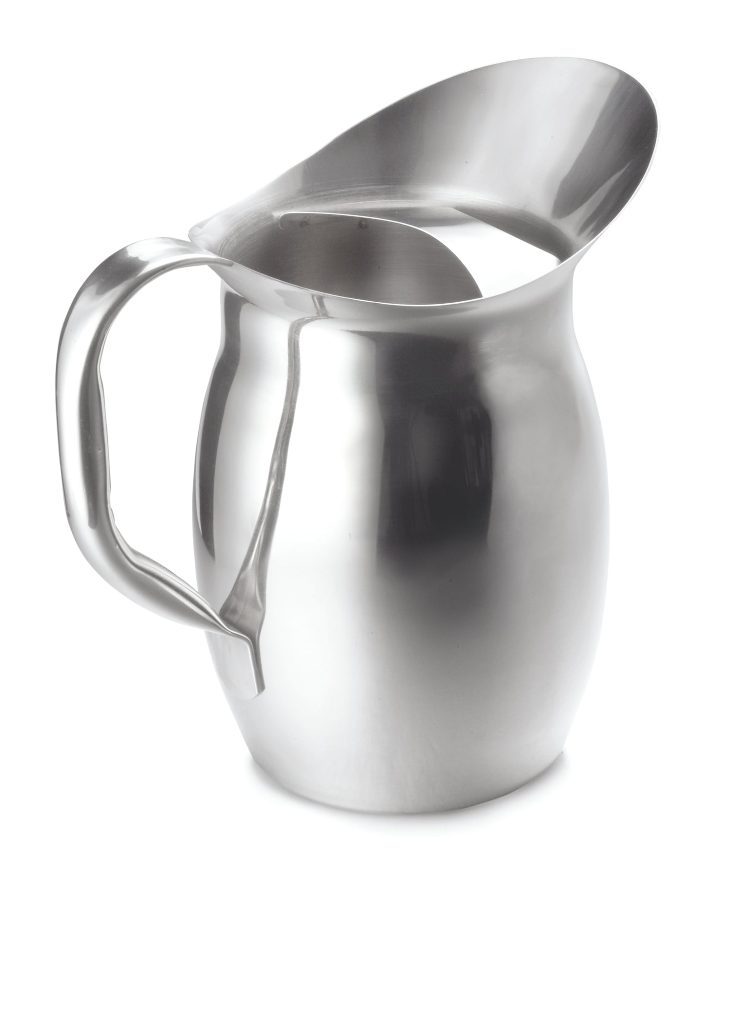 The Tablecraft 300 Bell Water Pitcher 2 Qt. With Ice Guard is a professional-grade beverage container crafted from high-quality 18/8 stainless steel, designed for commercial foodservice applications requiring durable and hygienic hydration solutions. This 2-quart capacity pitcher features a mirror finish for an attractive presentation and includes an integrated ice guard to prevent ice chunks from entering the beverage. Suitably used in hotel bar setups, banquet facilities, and catering services, it combines functional design with material resilience for efficient service environments. Its dishwasher-safe construction ensures ease of cleaning, while its precise dimensions and robust build meet the demands of high-volume beverage service operations.