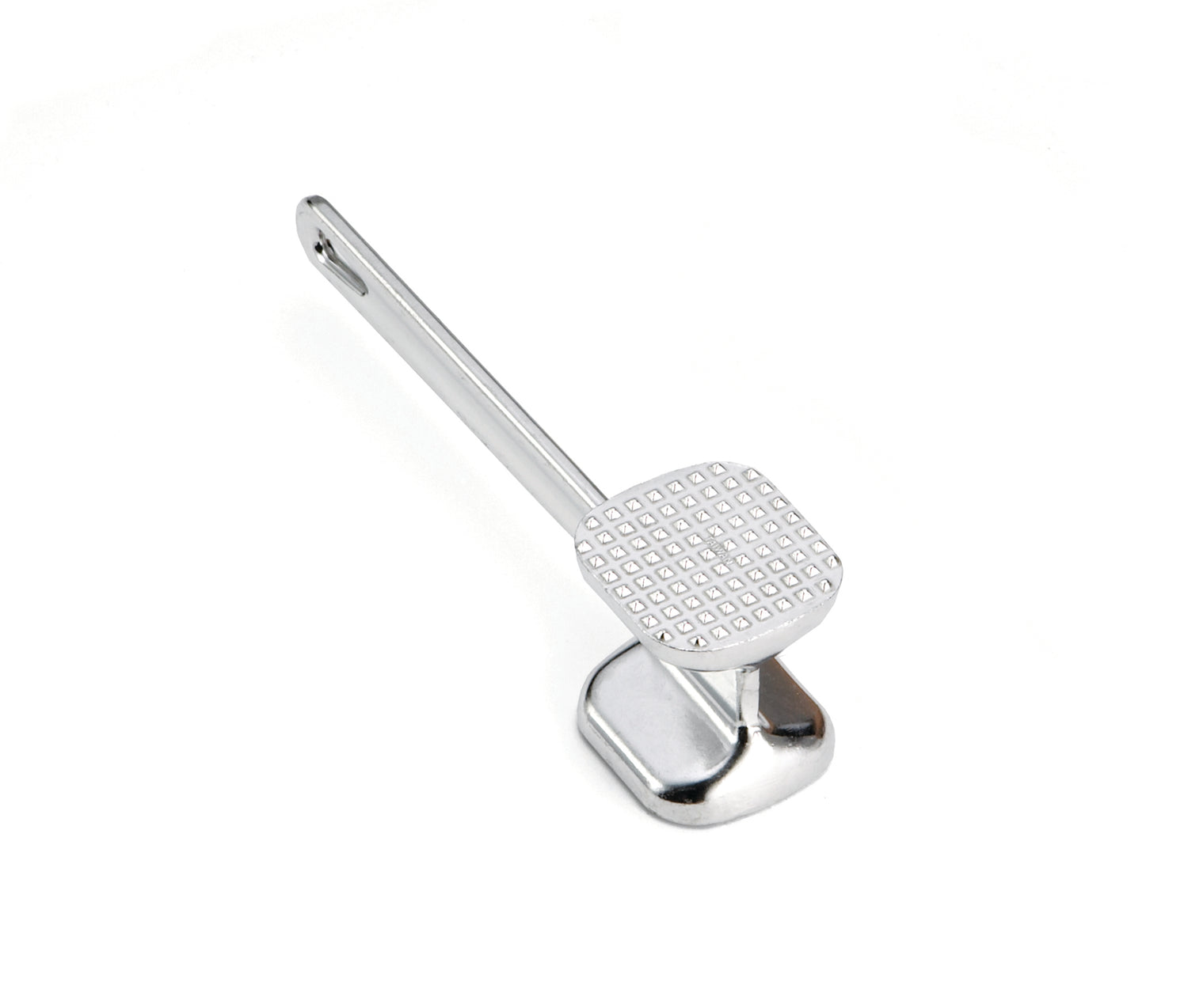 A commercial meat tenderizer is a specialized kitchen tool used to mechanically break down connective tissues and flatten meat for uniform cooking and presentation. The Tablecraft 3005 model provides a durable, cast aluminum head designed for repeated use in high-volume foodservice environments. Its double-sided surface, with coarse and smooth options, supports various culinary techniques, from tenderizing tougher cuts to creating even meat layers. Installed in restaurant kitchens, butcher shops, and catering operations, it ensures efficient preparation workflows and consistent meat quality, making it ideal for mid-volume meat processing tasks.