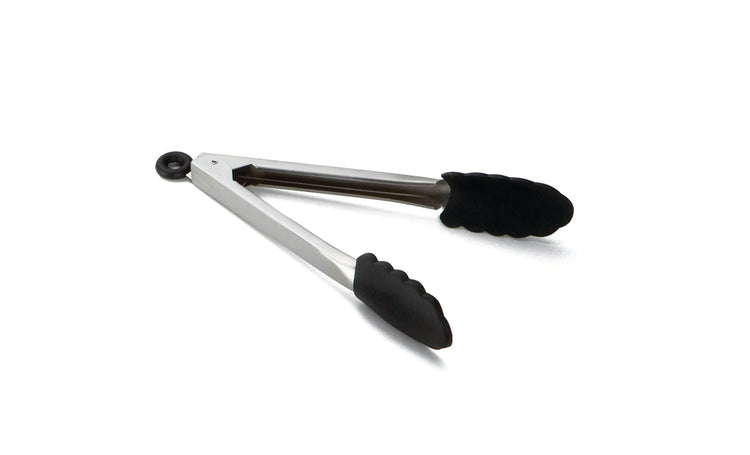 Compared to similar utility tongs, the Tablecraft 4009BK model stands out with its robust 1.2mm stainless steel construction, heat resistance up to 400°F, and a lock mechanism that enhances storage safety. Its dishwasher-safe design and silicone tips ensure sanitized handling and non-slip operation while maintaining surface integrity. This model's precise engineering offers a seamless blend of durability, functionality, and ergonomic design, enabling efficient workflow in demanding foodservice environments.
