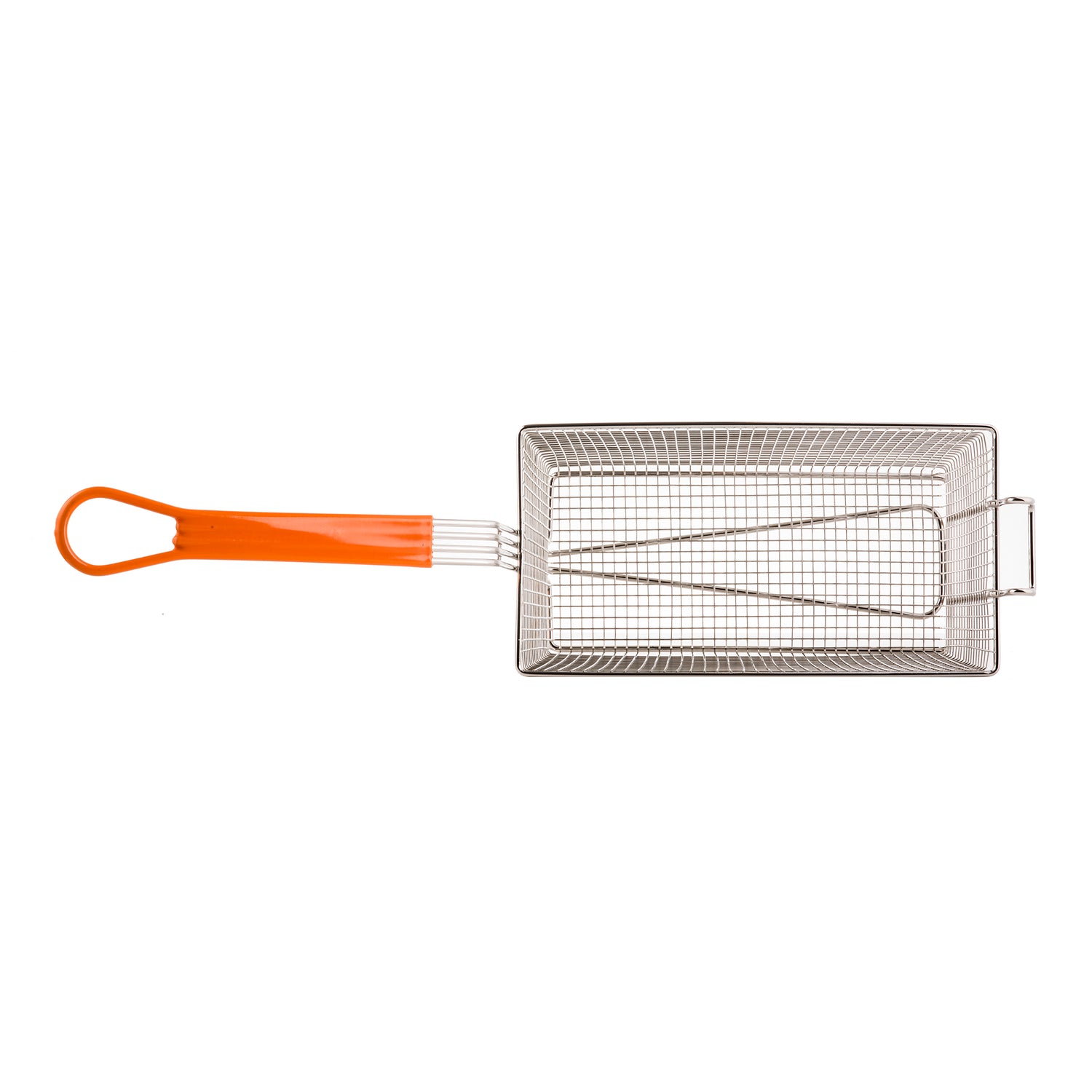 Tablecraft 43 24-1/2 Inch Rectangular Fry Basket Nickel Plated with Orange Handle