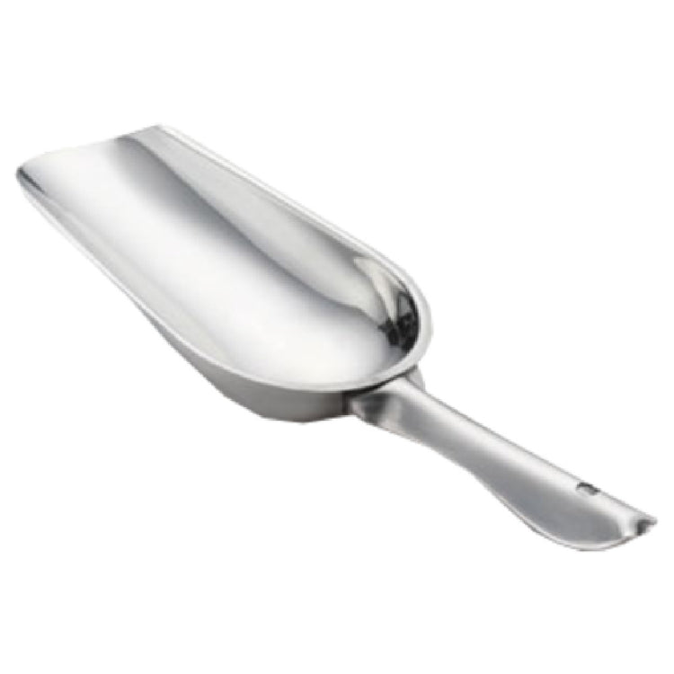 This ice scoop features a robust stainless steel build with a round bottom shape tailored for seamless ice transfer. Its ergonomic handle enhances grip and ease of use during repetitive tasks, while its dishwasher-safe surface simplifies cleaning. Suitable for bar service, buffets, and catering, the scoop's compact size facilitates quick workflow integration, supporting efficient ice distribution and sanitation routines in busy foodservice operations.