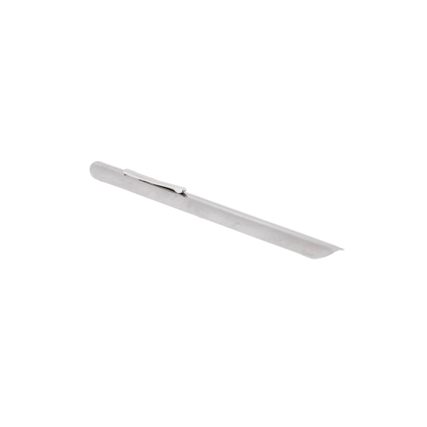 The Tablecraft 519 is engineered with a 6-inch stainless steel blade, measuring 0.25 inches in height, and a width of 0.62 inches, combining durability with compactness. It weighs just 0.04 lbs, making it highly portable. Its construction from high-grade stainless steel ensures resistance to corrosion and provides a sanitary surface compatible with frequent cleaning routines. The tool complies with Proposition 65 standards, and its design includes a secure pocket clip for convenience. The overall dimensions allow for ease of storage and quick handling in fast-paced commercial kitchens. No electrical requirements are necessary, and the product supports routine manual cleaning and sanitation to meet food safety standards. The manufacturing details indicate a solid, commercial-grade utensil suitable for high-volume environments such as buffet lines, catering stations, and restaurant prep areas.