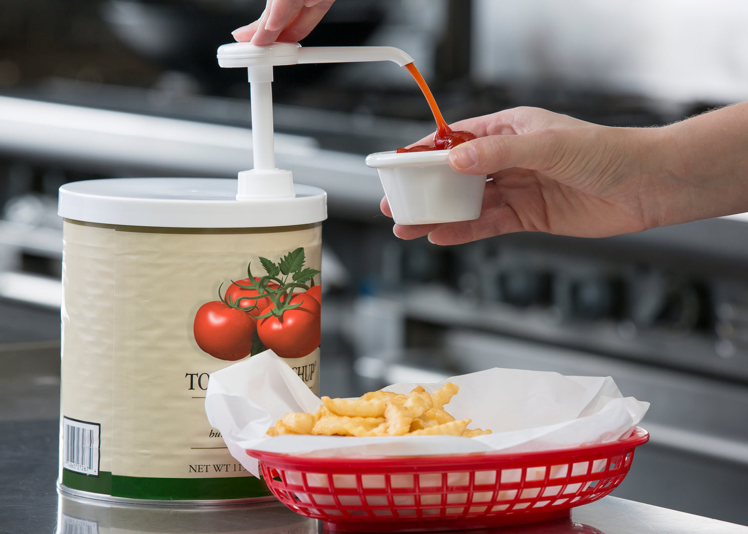 A commercial condiment syrup pump only is a specialized dispensing device used in foodservice environments for controlled distribution of liquids such as syrups, sauces, and condiments. The Tablecraft 662K Economy Pump Kit includes an 11-inch dip tube optimized for reliable operation, multiple tops for adaptable fit, and durable, dishwasher-safe plastic components. Installed in restaurants, cafeterias, or catering kitchens, this pump system ensures consistent portioning, reduces waste, and enhances workflow efficiency during mid-volume condiment and liquid application in professional foodservice settings.